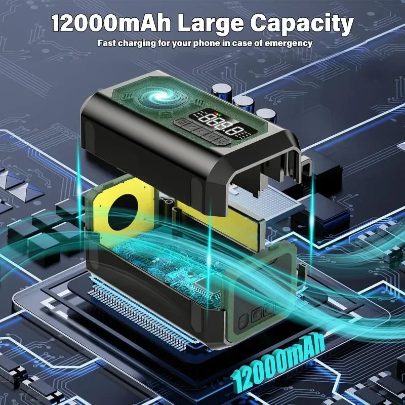 🔋 12000mAh Power Bank – Charges phones 3-4 times
