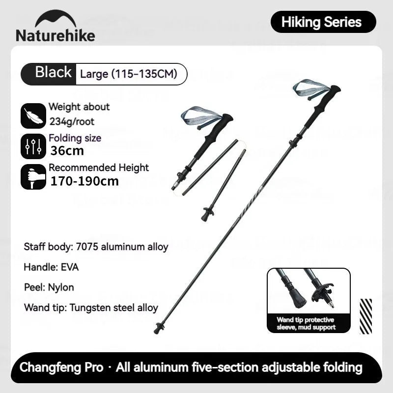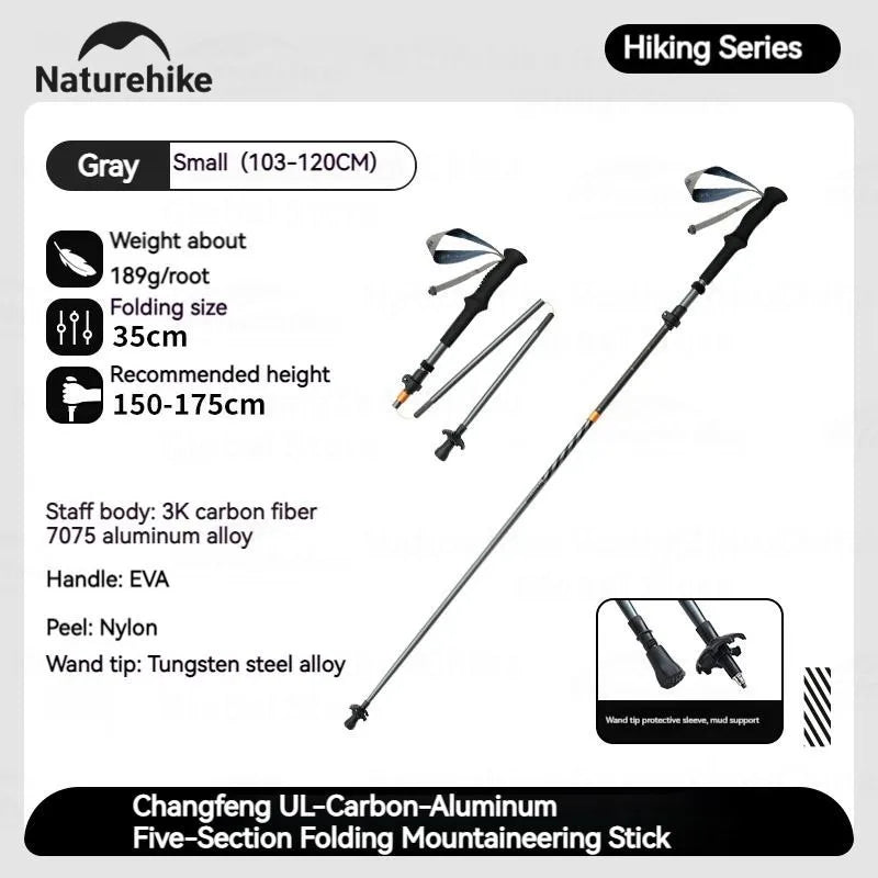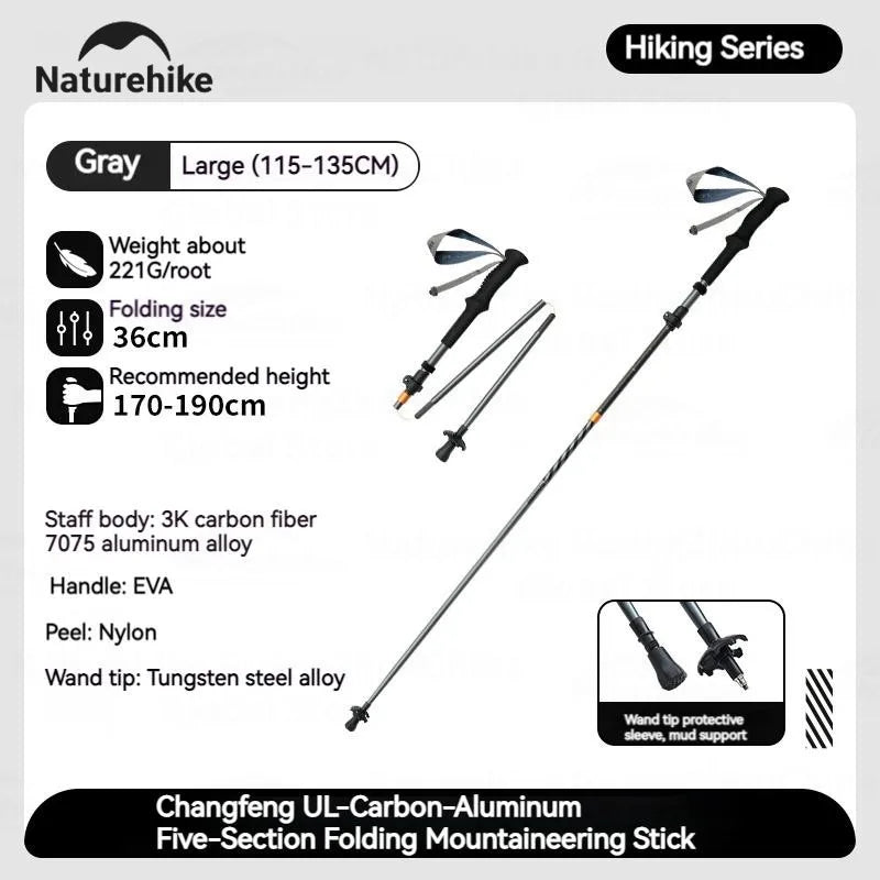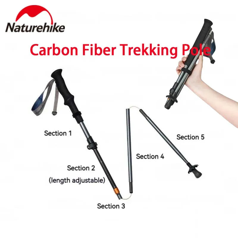 5-Section Folding Trekking Pole: Carbon Fiber and Aluminum Alloy Ultralight Walking Stick for Hiking and Climbing