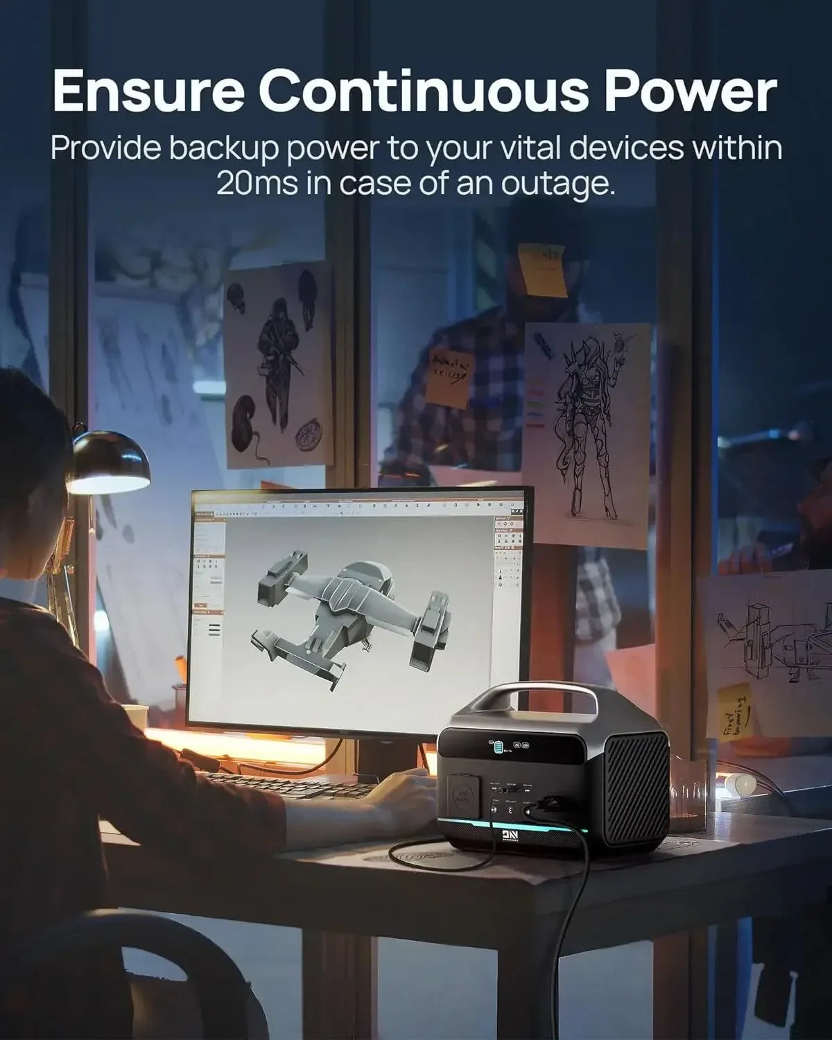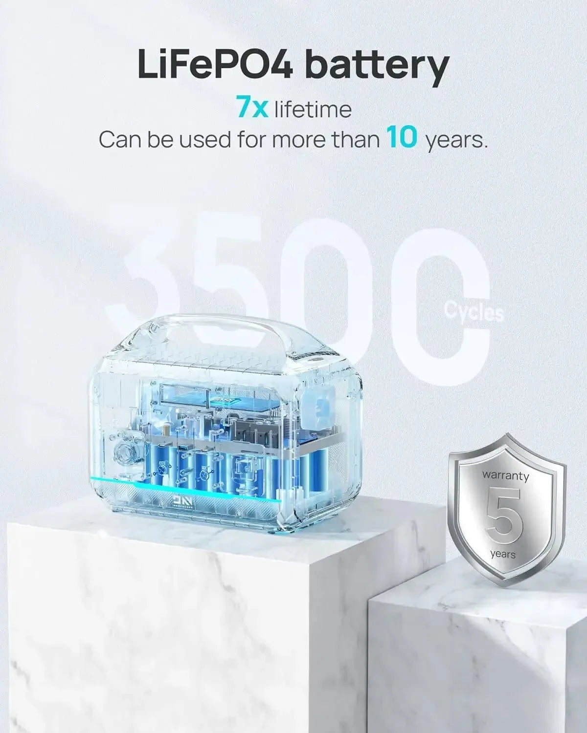 600W Portable Power Station – 299Wh LiFePO4 Solar Generator with Dual 600W AC Outlets
