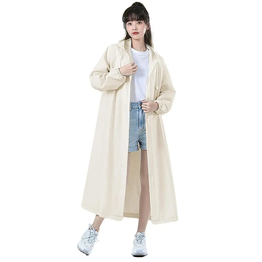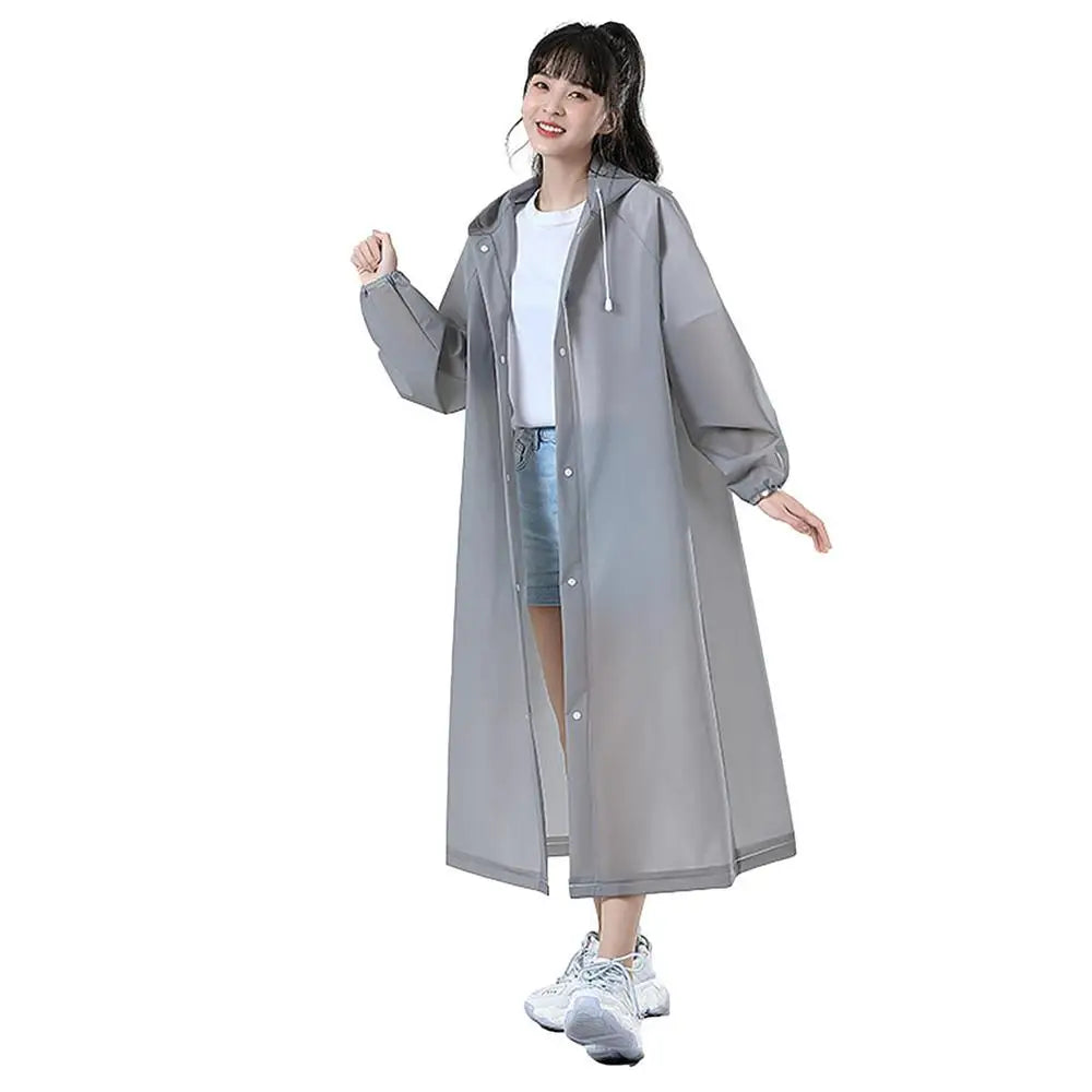 Adult Long EVA Raincoat - Waterproof Hooded Rain Poncho for Men and Women, Travel, Camping