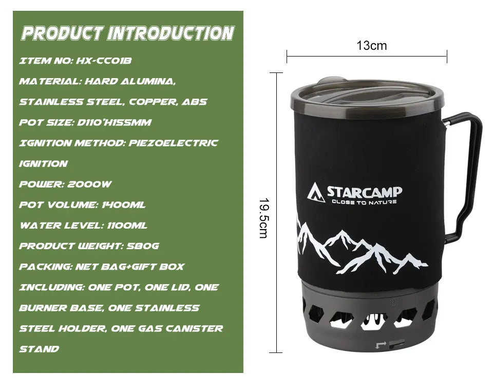 Portable 1400ml Fast-Boil Jet Cooker for Camping & Hiking loading