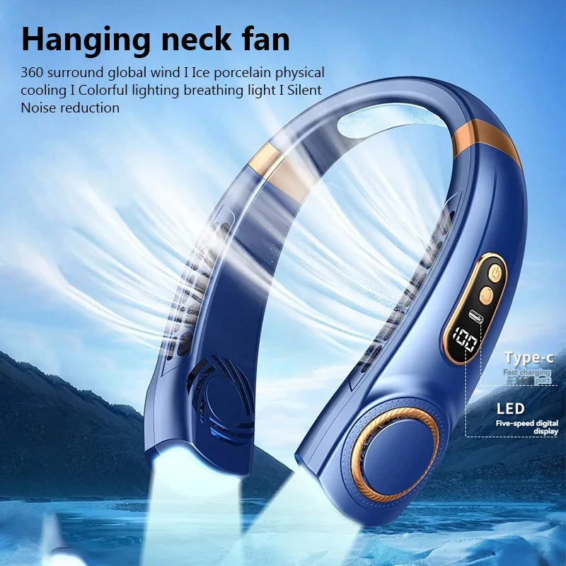 Portable Bladeless Halterneck Fan – USB Rechargeable, Silent, Hands-Free Cooling