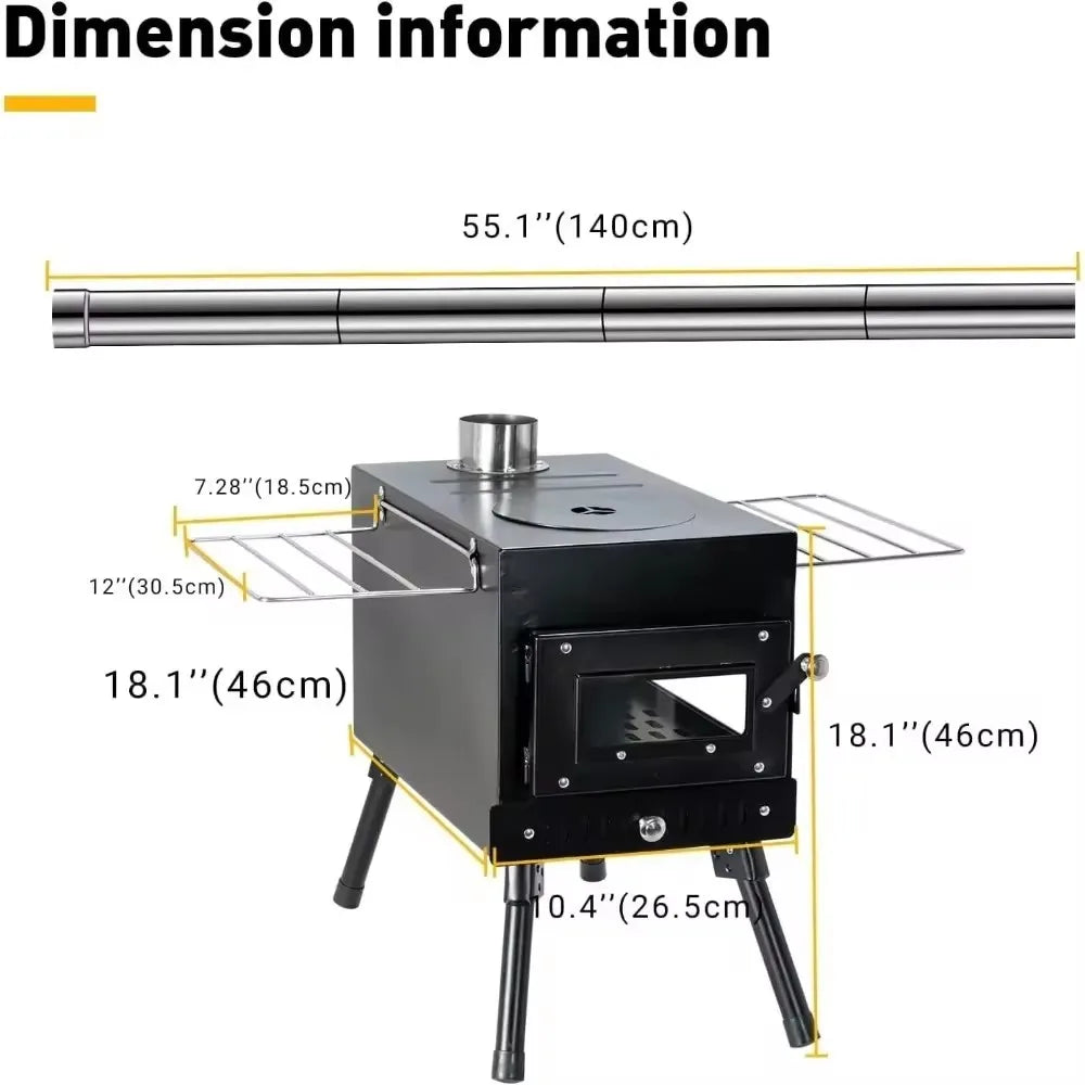 Portable Stainless Steel Tent Stove: Wood Burning Stove with Chimney Pipe for Camp Heating & Cooking