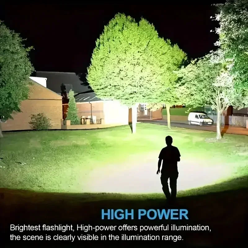 Ultra-Bright Rechargeable LED Flashlight – 100,000 Lumens USB Zoomable Tactical Light for Fishing, Hunting & Camping