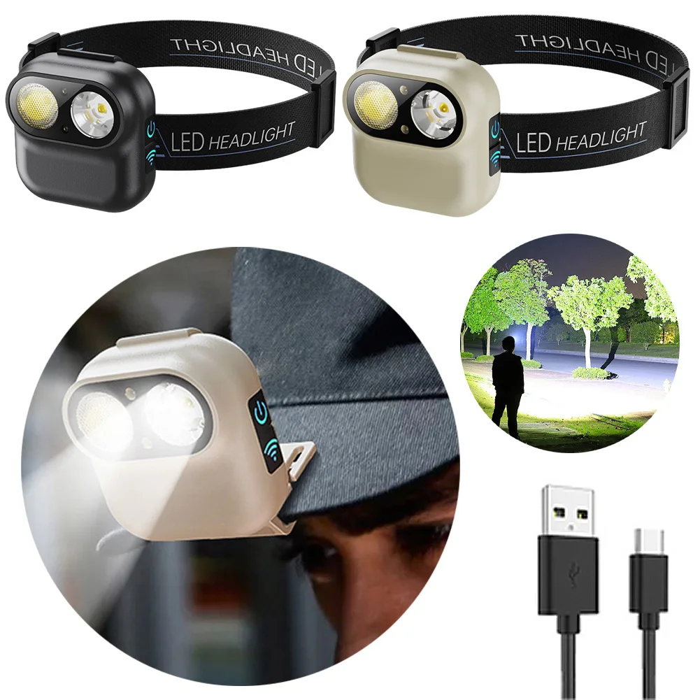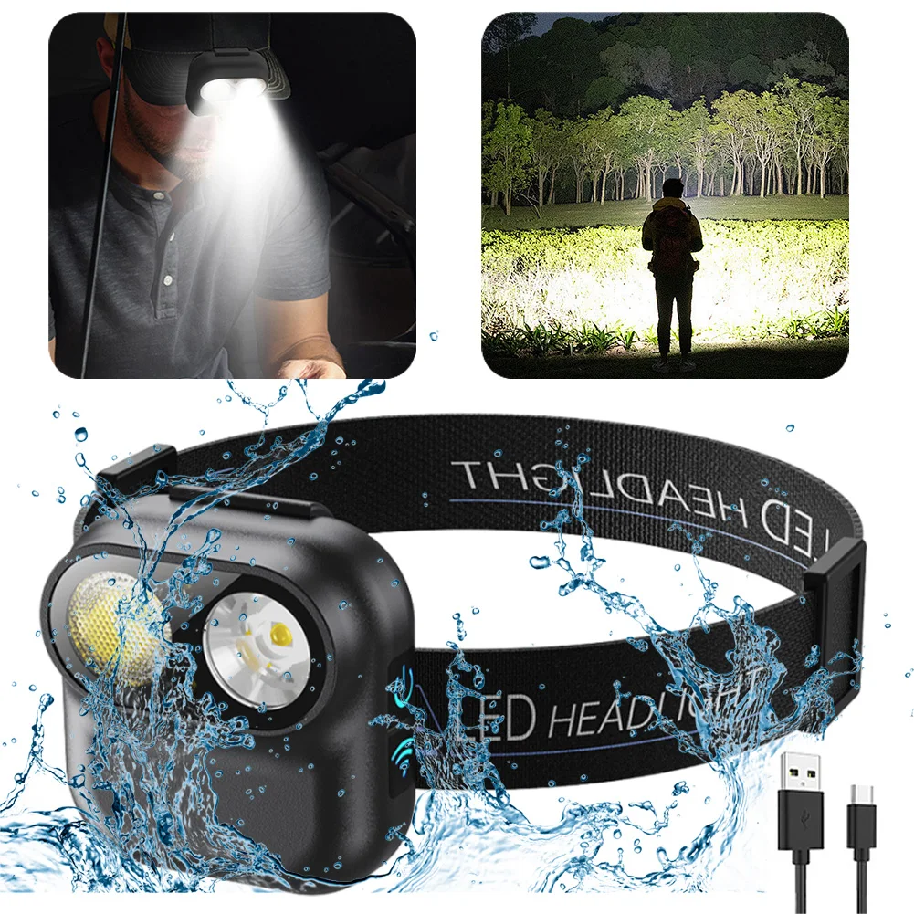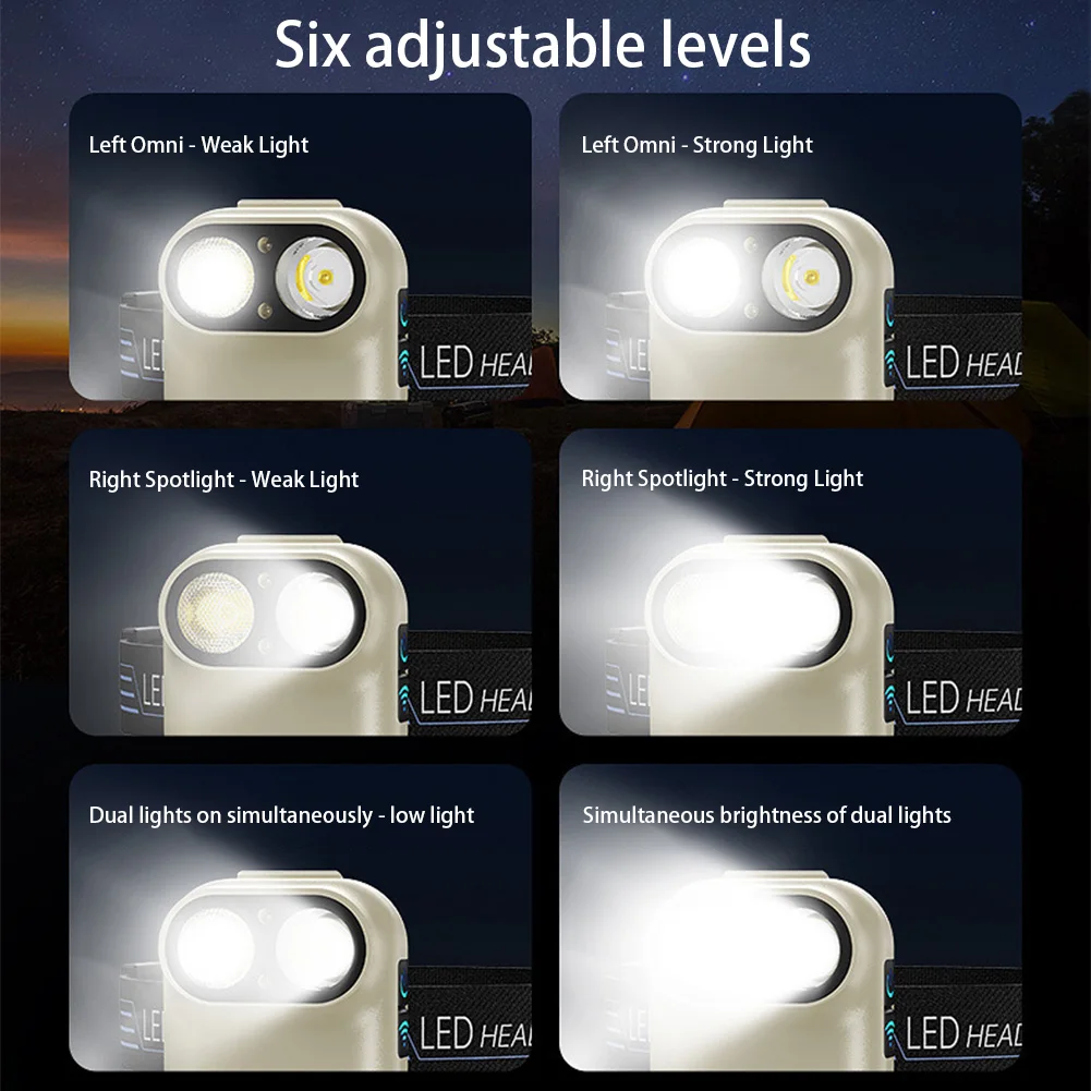 USB Rechargeable High Brightness Headlight, 6 Gears, 800mAh for Camping and Fishing