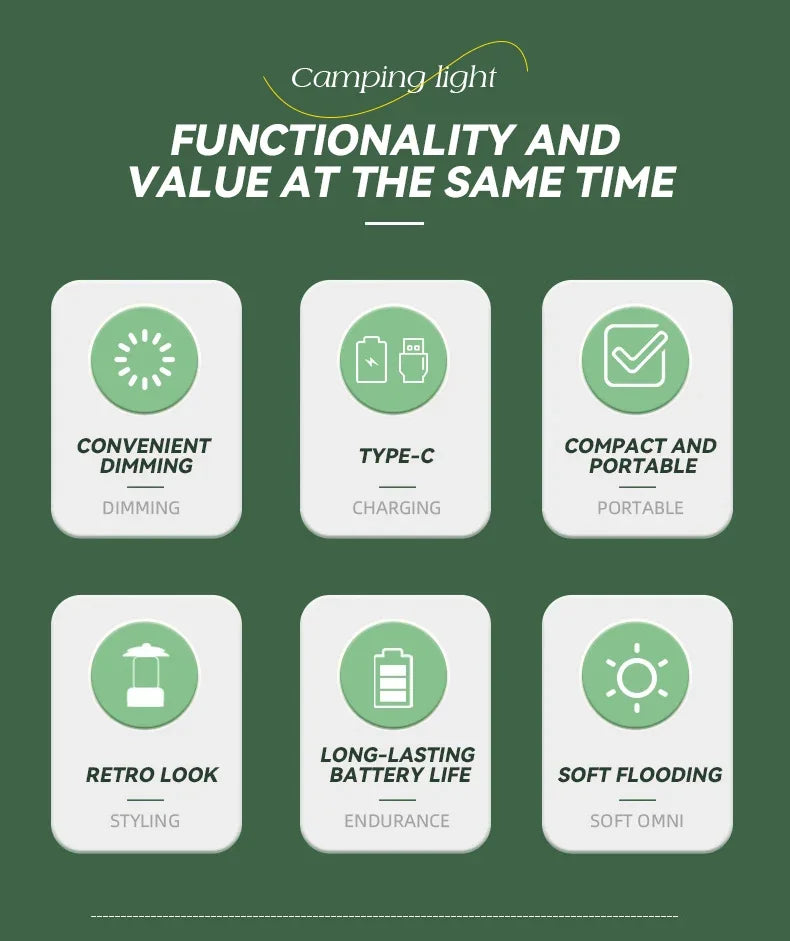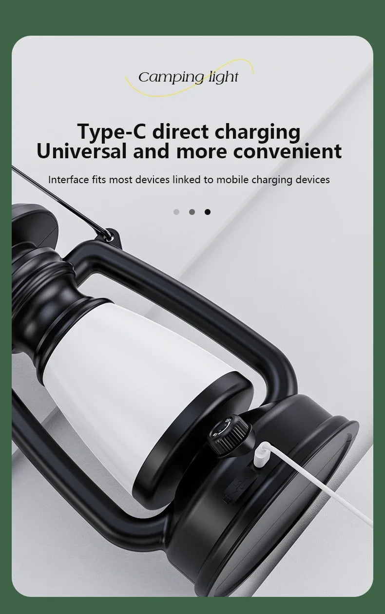 USB & Solar Rechargeable Camping Lantern – Portable LED Tent Light with 3000K–5000K Dimming, Waterproof Outdoor Lamp