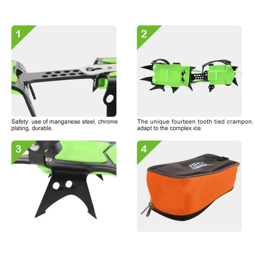 ✔ Diseño Ultra-Grip de 14 dientes : 2 puntos de hielo frontales para escalar, más 12 picos traseros para estabilidad.