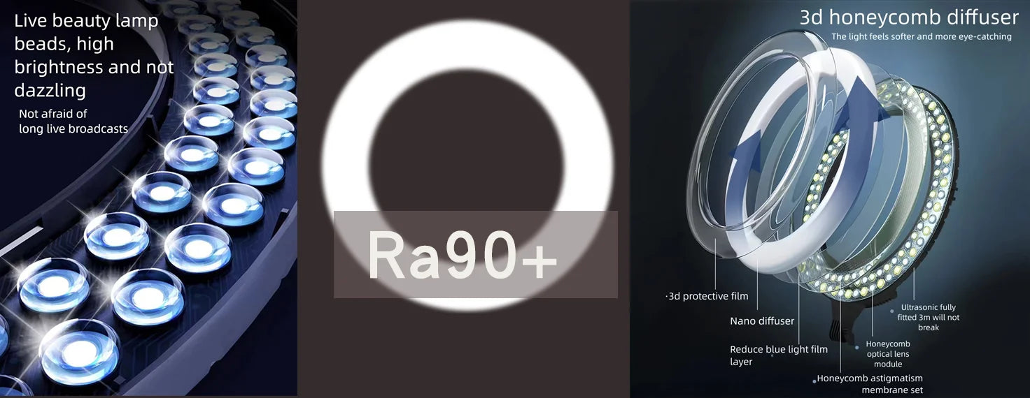 Elevate your content with this studio-quality ring light available in 5 sizes (6"-14"). Features bi-color temperature adjustment (3200K-5600K), 10-100% dimmable brightness, and universal 1/4" tripod mount. Includes USB power adapter – perfect for streamers, makeup artists, and photographers. Choose from 48-208 LEDs for flawless lighting. Compatible with smartphones, DSLRs, and all mounting stands.