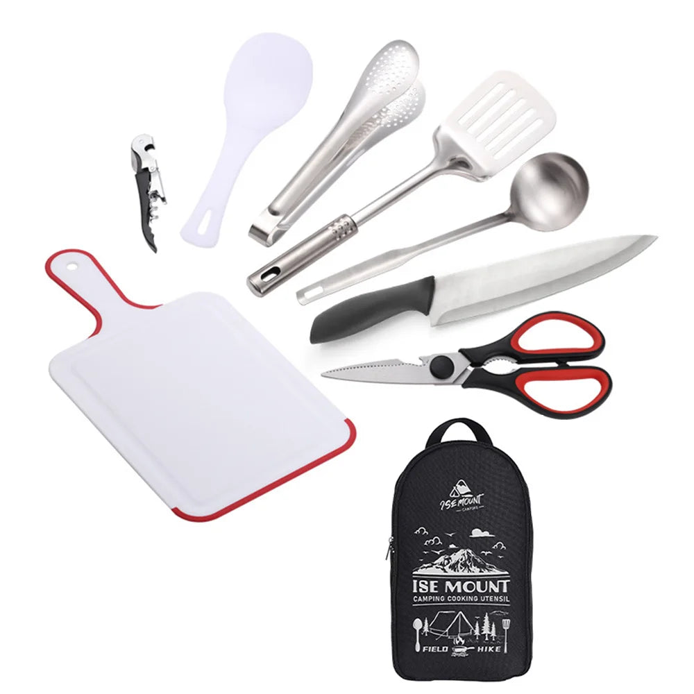 9-Piece Stainless Steel Camping Utensil Set for Outdoor Cooking & Picnics