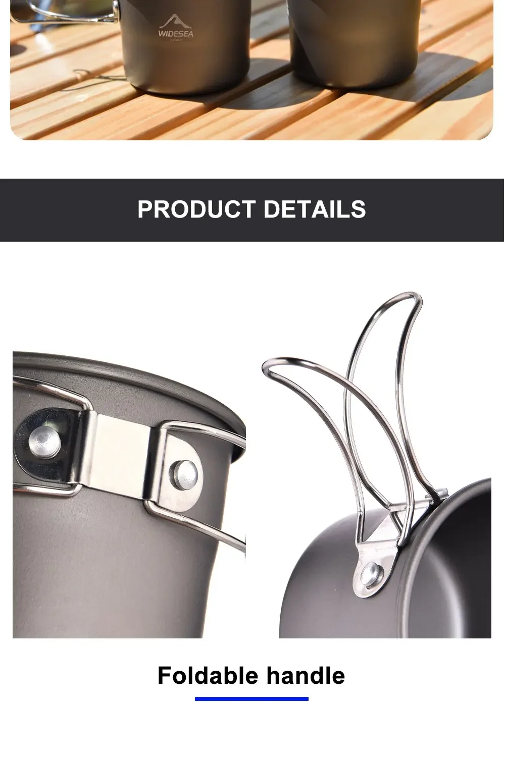 1. Nombre: Widesea Camping Cup Taza de aluminio plegable para exteriores con asa