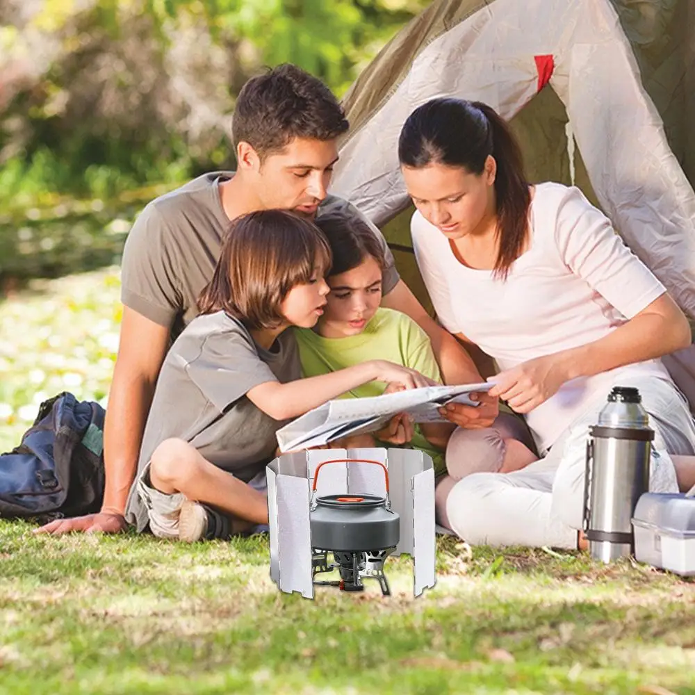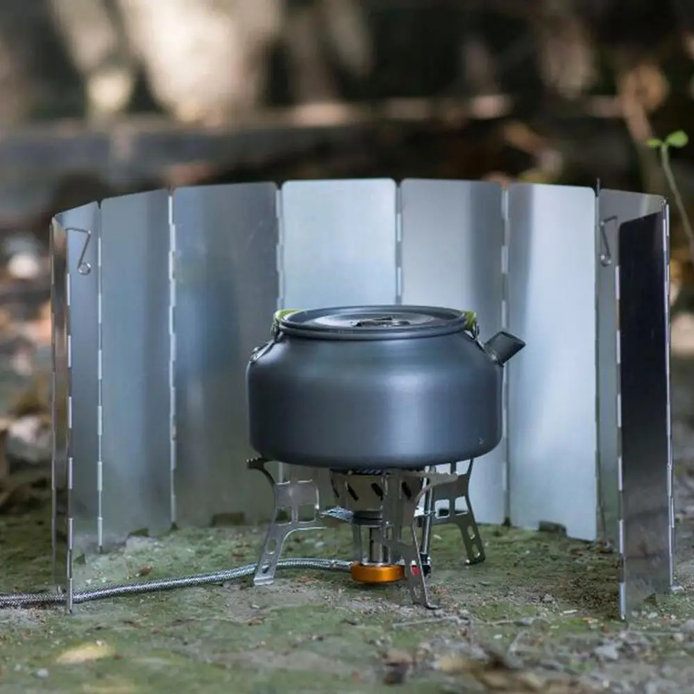 Parabrisas plegable de aleación de aluminio para estufa de camping con bolsa de transporte