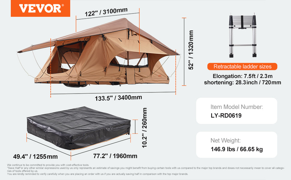 Tienda de techo plegable rígida con escalera telescópica, colchón y funda impermeable de PVC para SUV, furgonetas y camionetas. cargando