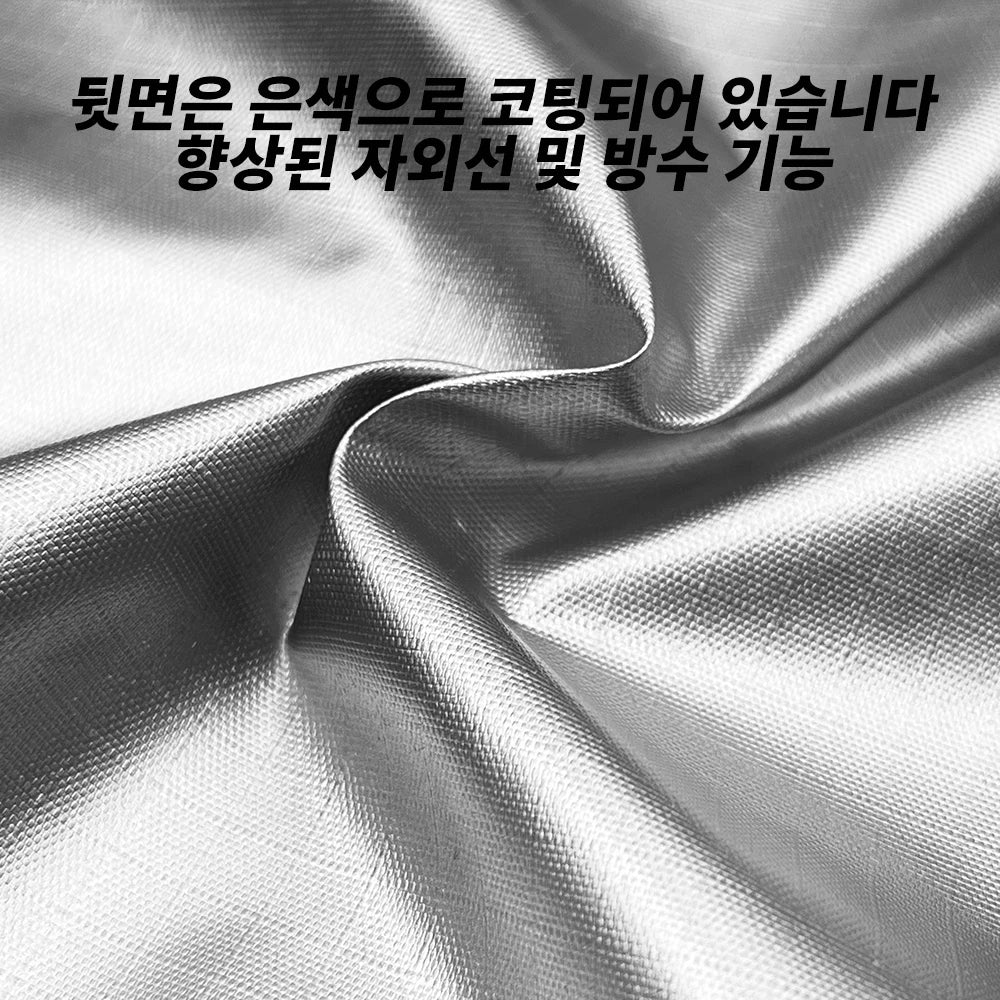 The silver-coated backing reflects sunlight and blocks UV rays, helping keep the shaded area cooler.