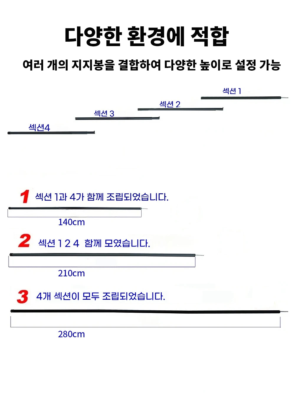 Optional 2.4m or 2.8m iron poles provide strong structural support and wind stability.