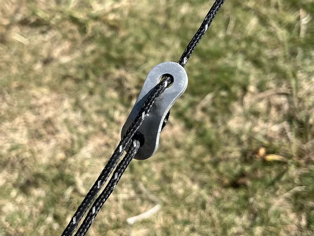 Multiple anchor points allow flexible tarp configurations for different shelter setups.