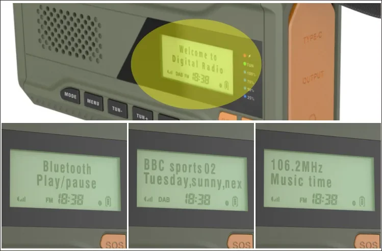 Manténgase preparado y conectado con la Radio de Emergencia NOAA/DAB/FM, su fiel compañero para emergencias y aventuras al aire libre. Con su amplia gama de funciones y diseño duradero, esta radio le garantiza mantenerse informado, entretenido y con energía dondequiera que vaya.