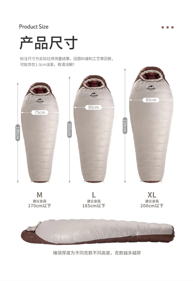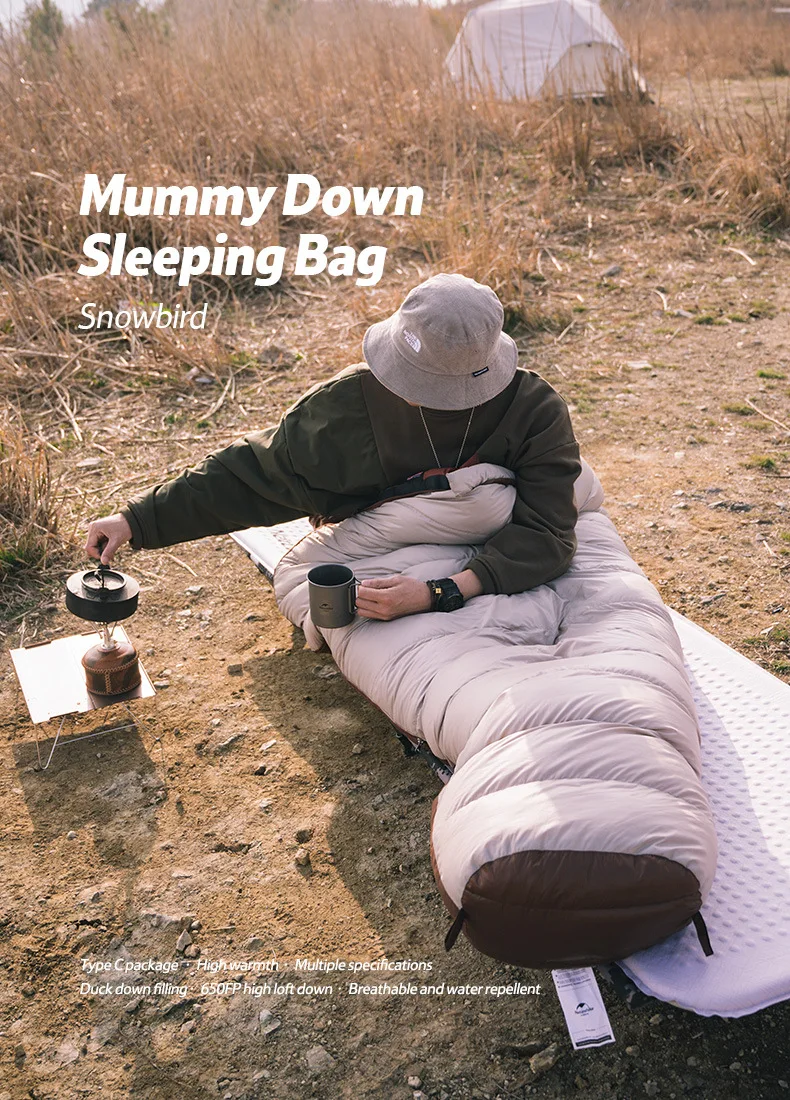 El saco de dormir portátil Naturehike SnowBird 20D tipo momia para acampar al aire libre es la mejor opción para los amantes del senderismo invernal que buscan calidez y comodidad. Su relleno de plumón de pato de primera calidad y su diseño tipo momia garantizan un aislamiento superior y una excelente retención del calor, permitiéndote mantenerte abrigado incluso en temperaturas gélidas. Ligero, portátil y duradero, es el equipo perfecto para tu próxima aventura invernal, ya sea acampando en la montaña o explorando paisajes nevados. Elige la talla que mejor se adapte a ti y emprende tu aventura de senderismo invernal con confianza.