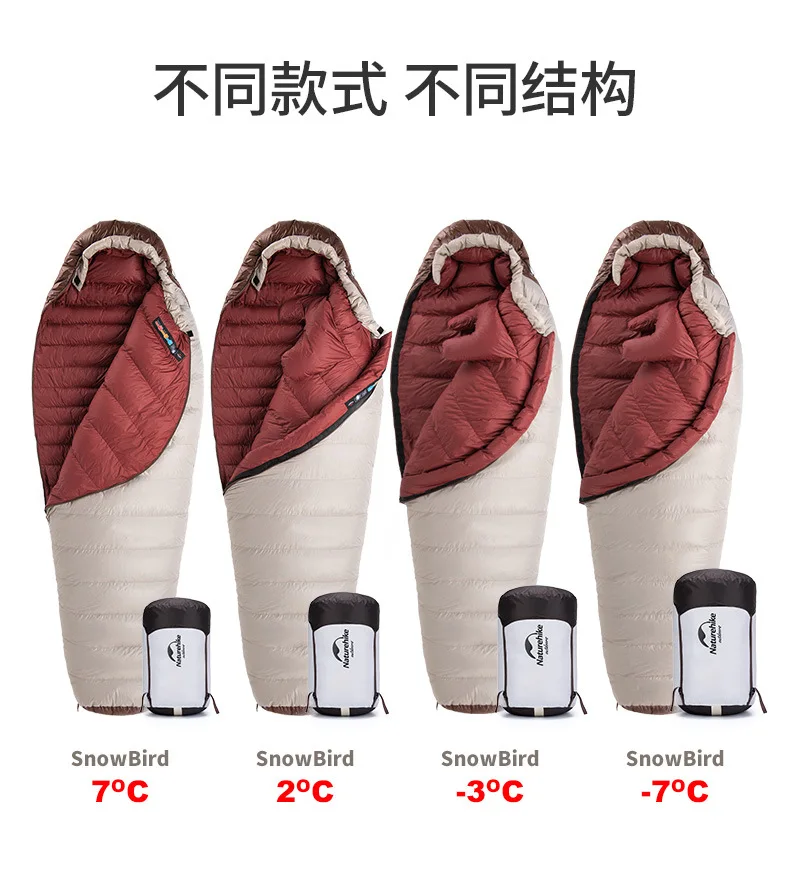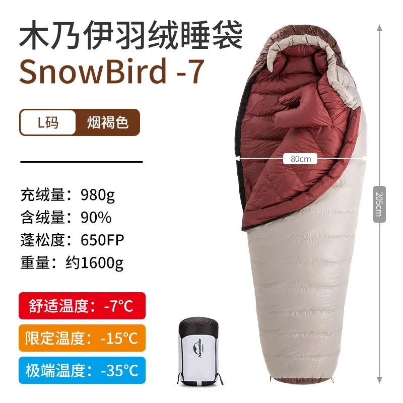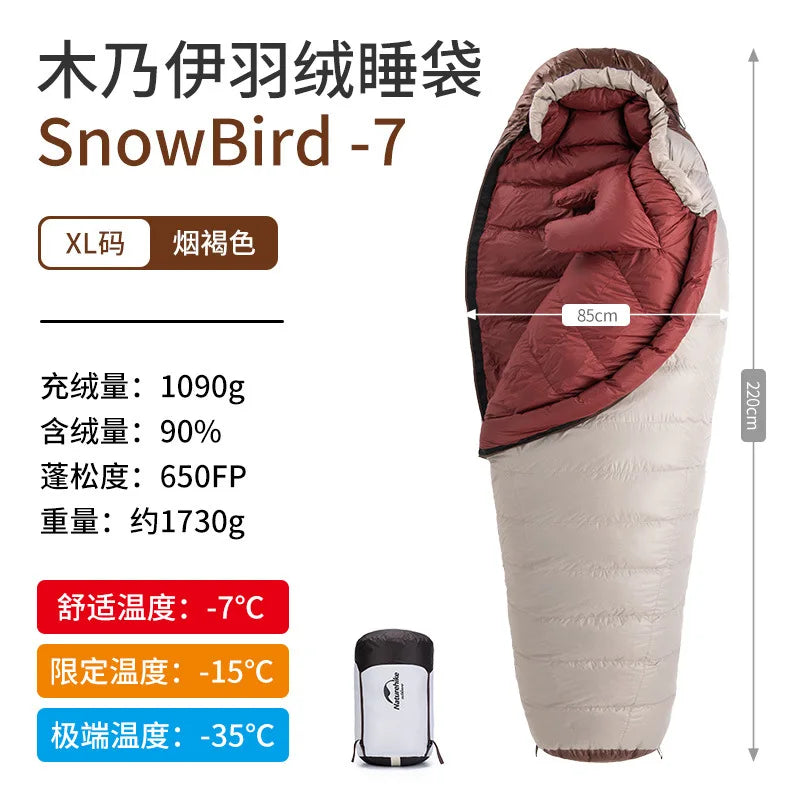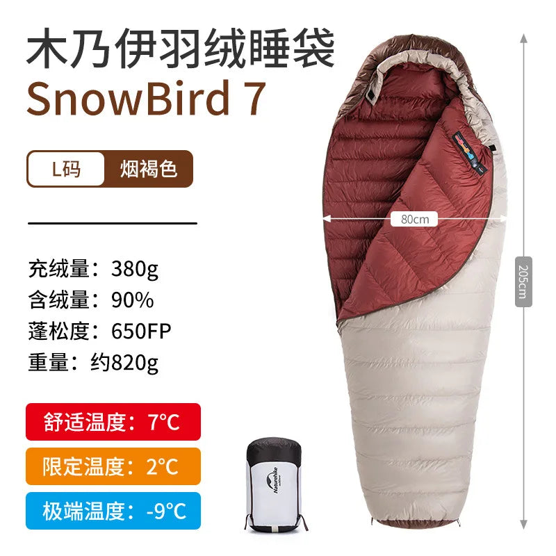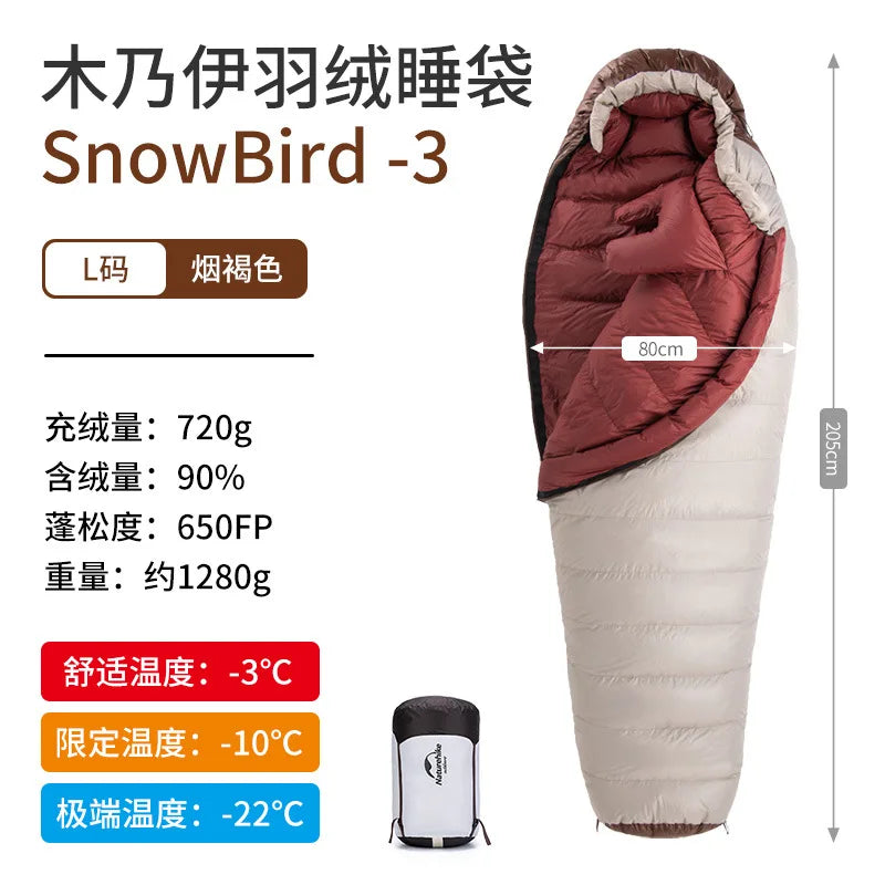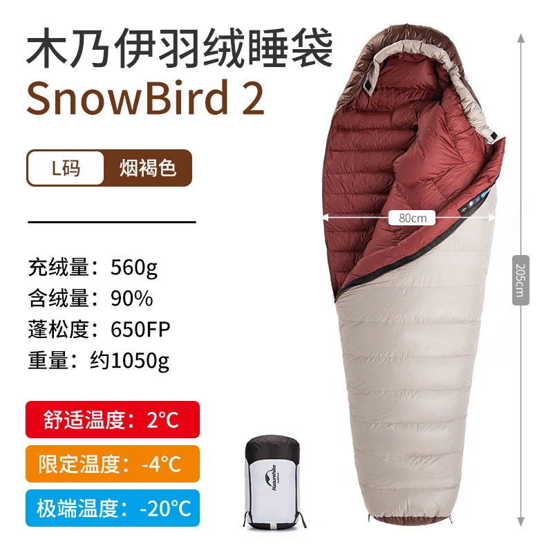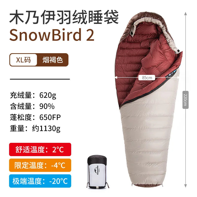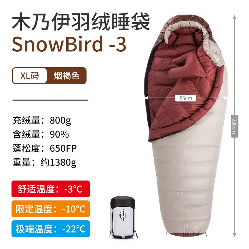 Presentamos el saco de dormir portátil Naturehike SnowBird 20D tipo momia para acampar al aire libre, el compañero perfecto para tus aventuras de senderismo invernal. Fabricado con materiales de primera calidad y un diseño innovador, este saco de dormir ofrece calidez y comodidad excepcionales en climas fríos. Relleno con 90 % de plumón de pato con un poder de relleno de 650 FP, proporciona un aislamiento superior a la vez que es ligero y portátil. Su diseño tipo momia garantiza la máxima retención de calor y un ajuste perfecto, manteniéndote abrigado durante toda la noche. Ya sea que acampes en la nieve o camines por paisajes helados, el saco de dormir SnowBird es tu equipo de confianza para explorar el invierno.