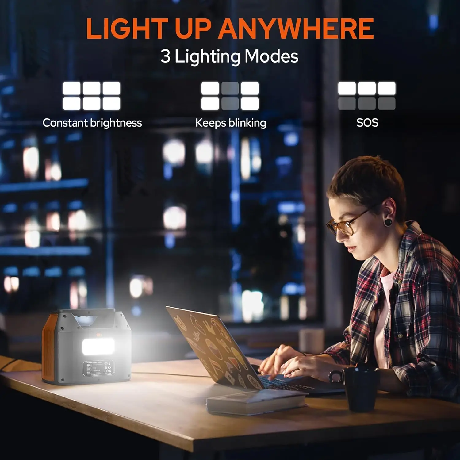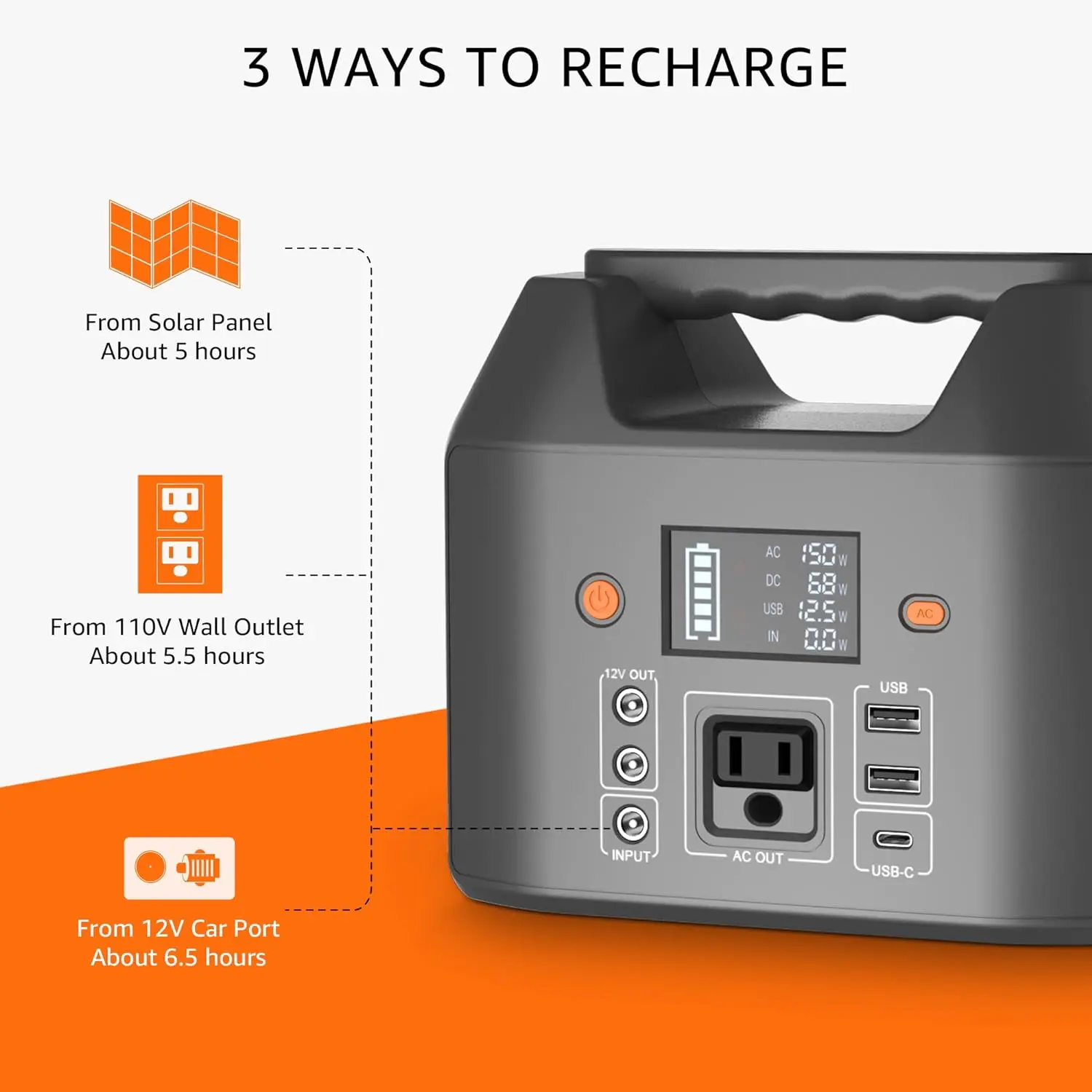 Esta estación de energía proporciona una salida de 150 W, capaz de alimentar pequeños electrodomésticos, computadoras portátiles, teléfonos y más, lo que la hace ideal para acampar, viajes por carretera y uso de emergencia.