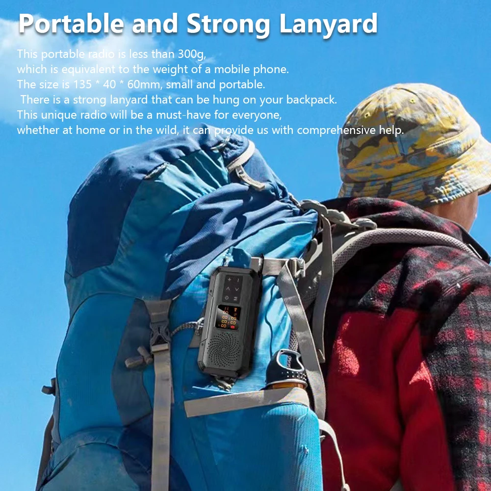 - Bandas AM/FM/WB/NOAA : acceda a una amplia gama de estaciones de radio y transmisiones meteorológicas de emergencia para mantenerse informado.