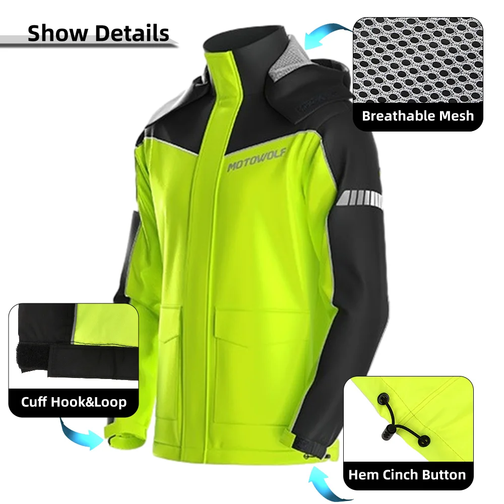 Impermeable de motocicleta para hombre, ligero, portátil, con división, chaquetas de lluvia, pantalones, traje impermeable reflectante, cómodo para motocross al aire libre