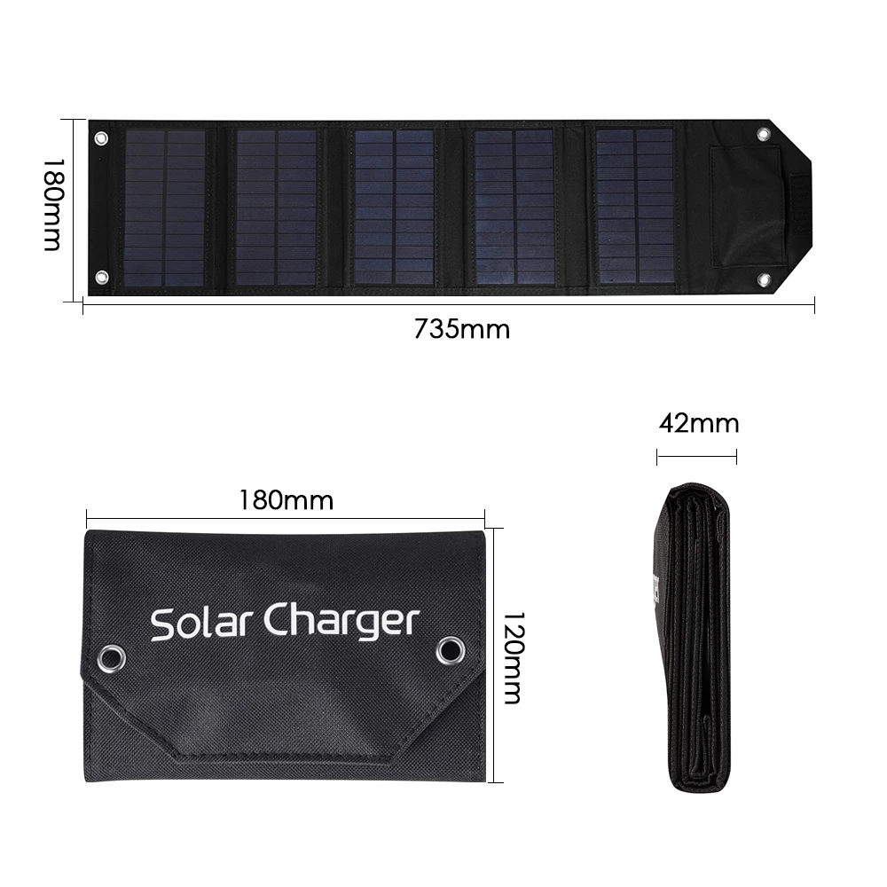Al elegir nuestro panel solar plegable de 100 W, se asegura de tener una fuente de energía confiable y eficiente para todas sus actividades al aire libre. Su alta potencia y su capacidad de carga USB de 5 V lo hacen perfecto para mantener sus dispositivos cargados mientras acampa, hace senderismo o explora la naturaleza. Su diseño plegable y flexible facilita su portabilidad y uso, mientras que su construcción impermeable garantiza durabilidad en diversas condiciones climáticas.