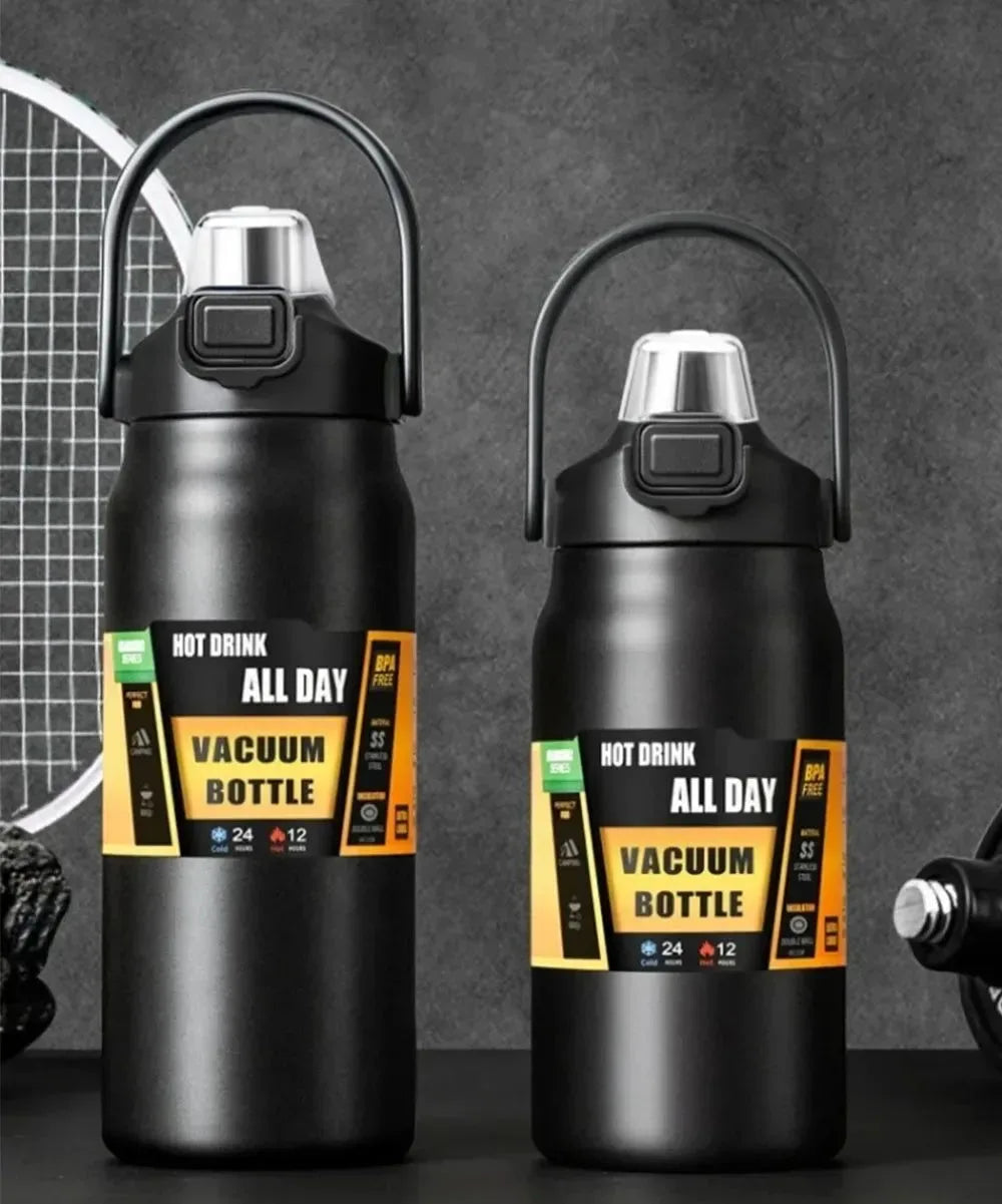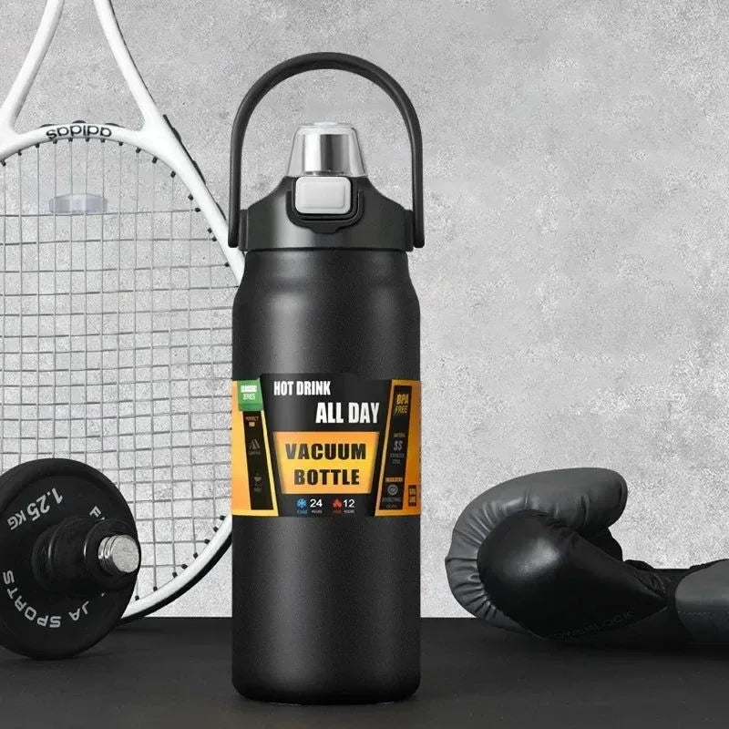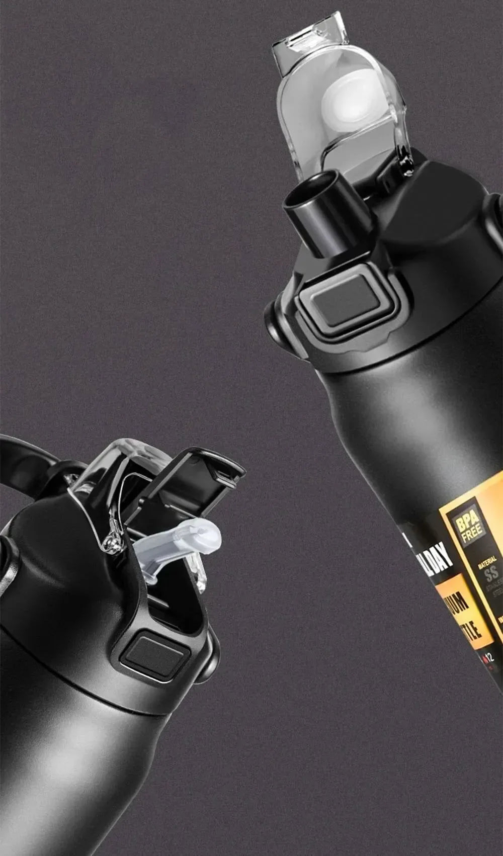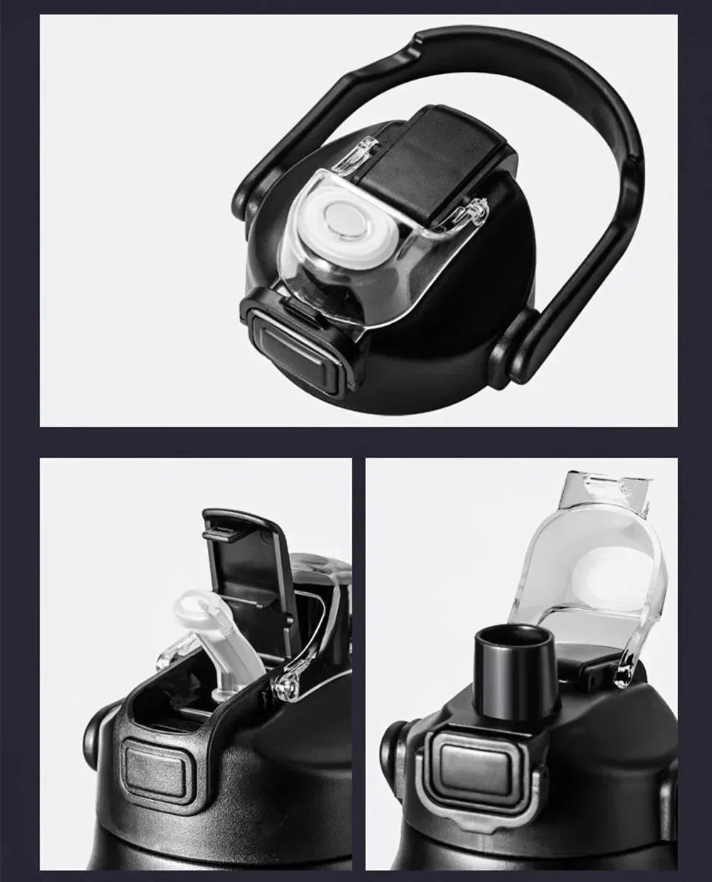 Experience ultimate hydration convenience with this 1500ml stainless steel thermal tumbler featuring innovative one-handed operation. The push-button straw lid automatically deploys with a simple click, while the vacuum insulation keeps drinks cold for 24 hours or hot for 8 hours. Crafted from food-grade stainless steel with a durable, slip-resistant coating, this versatile bottle offers both straw and straw-free drinking options. The wide mouth enables easy filling and cleaning, and the integrated carry handle makes it perfect for sports, travel, and daily use. Complete with leak-proof locking mechanism and dishwasher-safe design, it combines style with exceptional functionality.