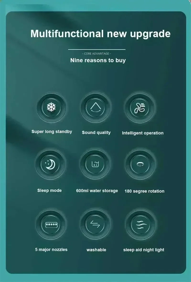 ✔ Diseño multiusos : ventilador + humidificador + luz ambiental en uno