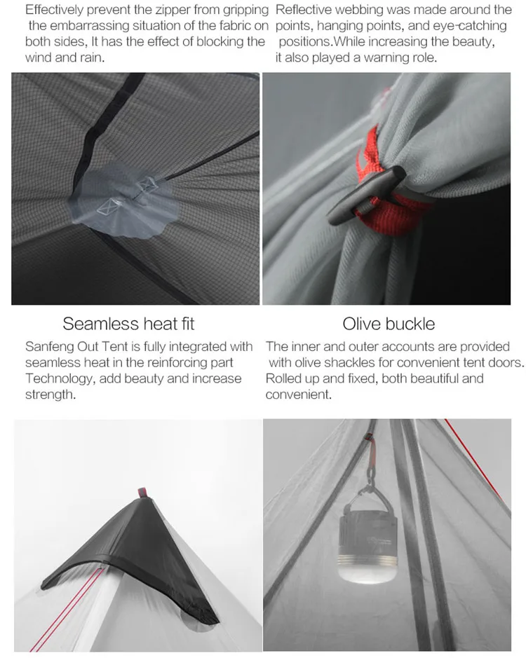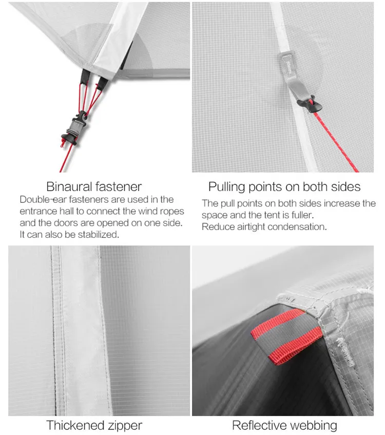 Construcción sin varilla: utiliza bastones de trekking o se puede ajustar con cuerdas, lo que reduce aún más el peso y el tamaño del paquete.