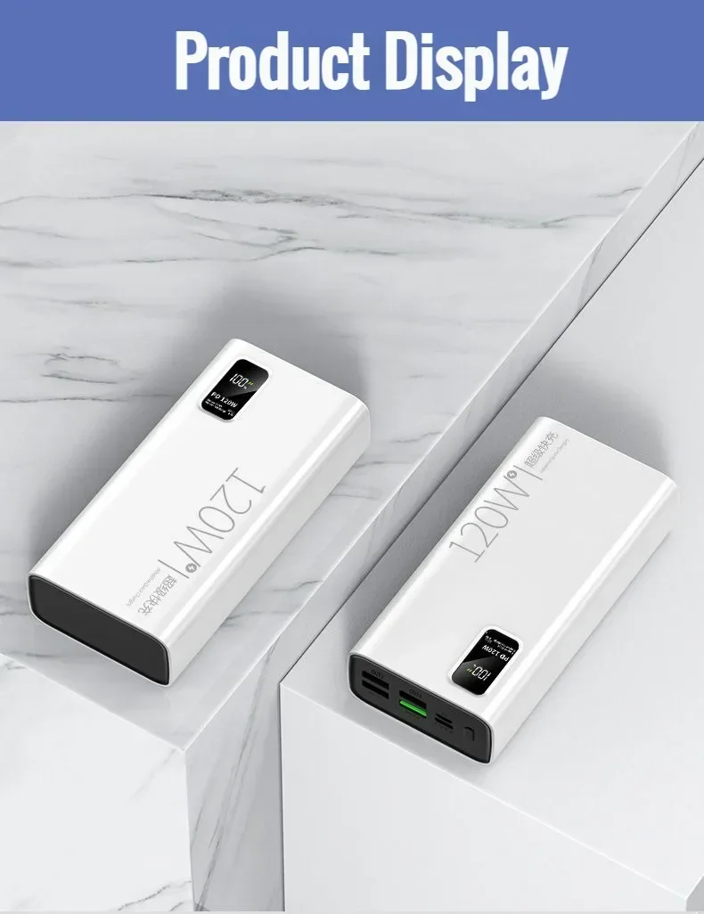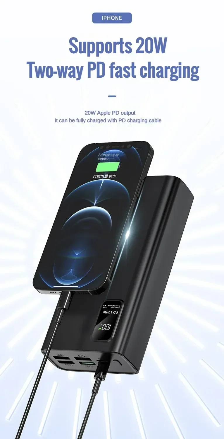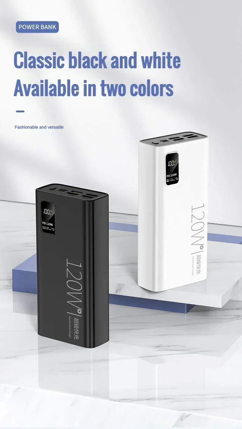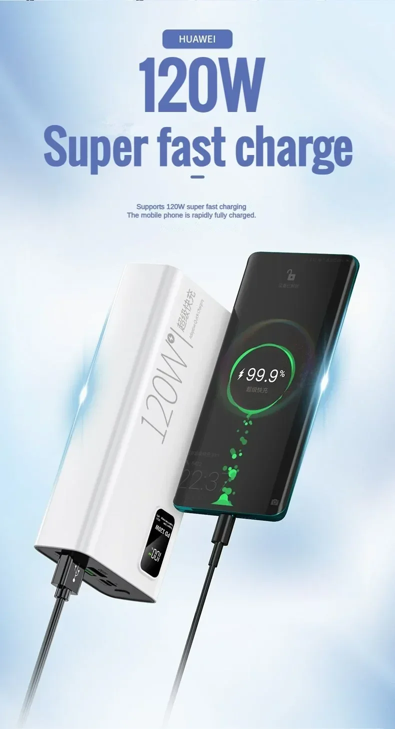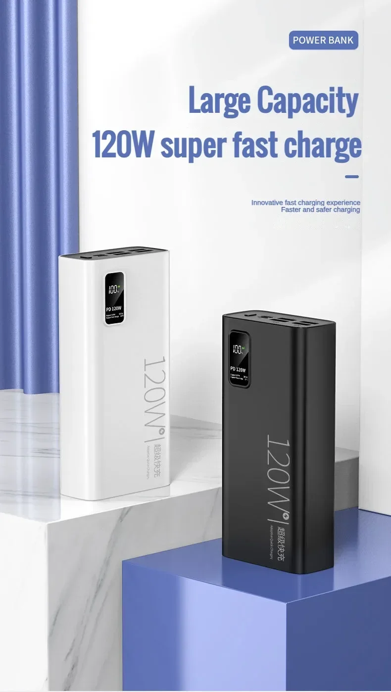 Banco de energía de 50000 mAh, 120 W, carga ultrarrápida, capacidad 100 % suficiente, cargador portátil para iPhone, Xiaomi, Huawei y Samsung.