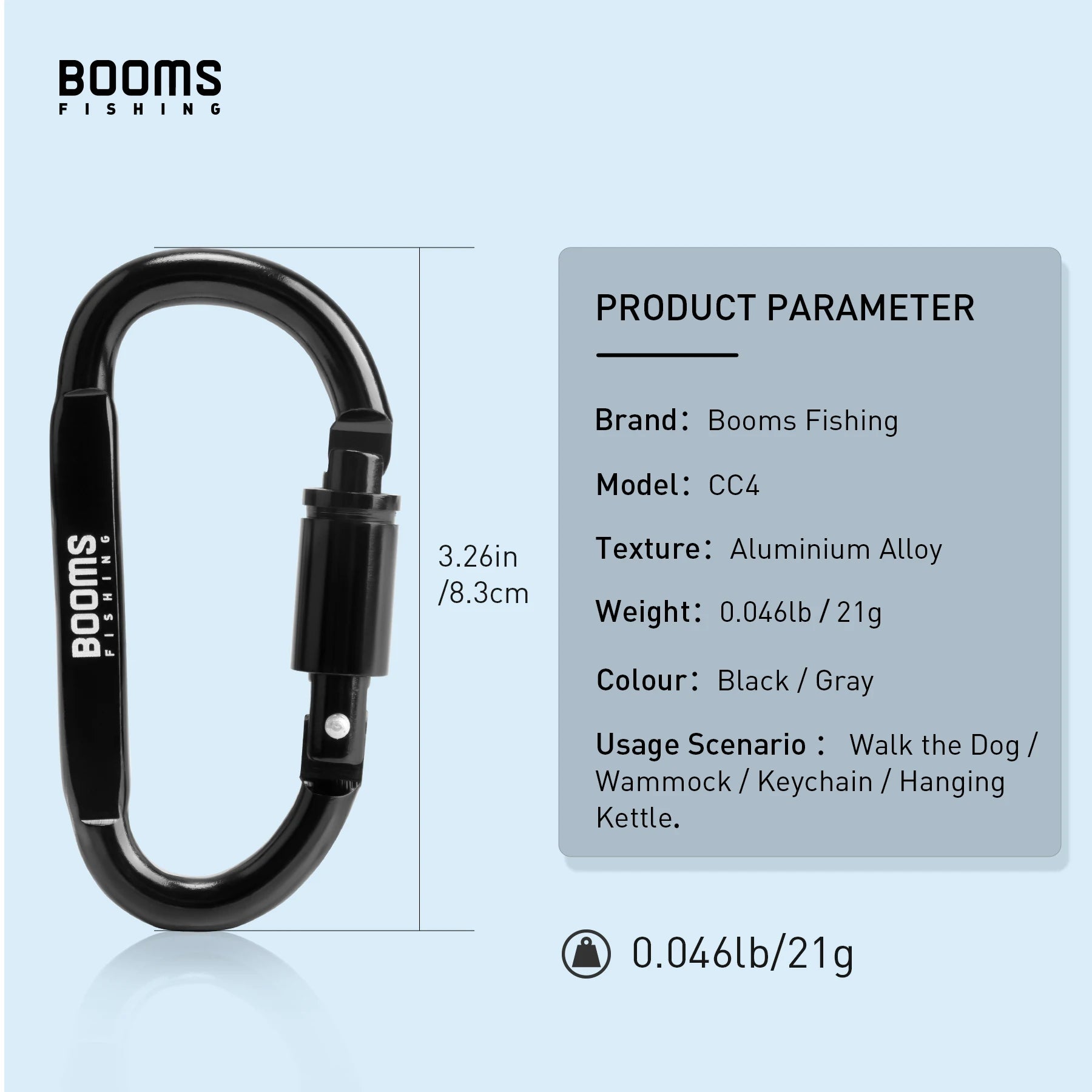 El mosquetón con anilla en D de Booms Fishing Survival es imprescindible para los amantes de las actividades al aire libre que buscan fiabilidad y versatilidad. Su resistente construcción de aleación de aluminio, su seguro mecanismo de cierre de rosca y su diseño compacto lo convierten en una herramienta esencial para acampar, escalar, viajar y diversas actividades al aire libre.