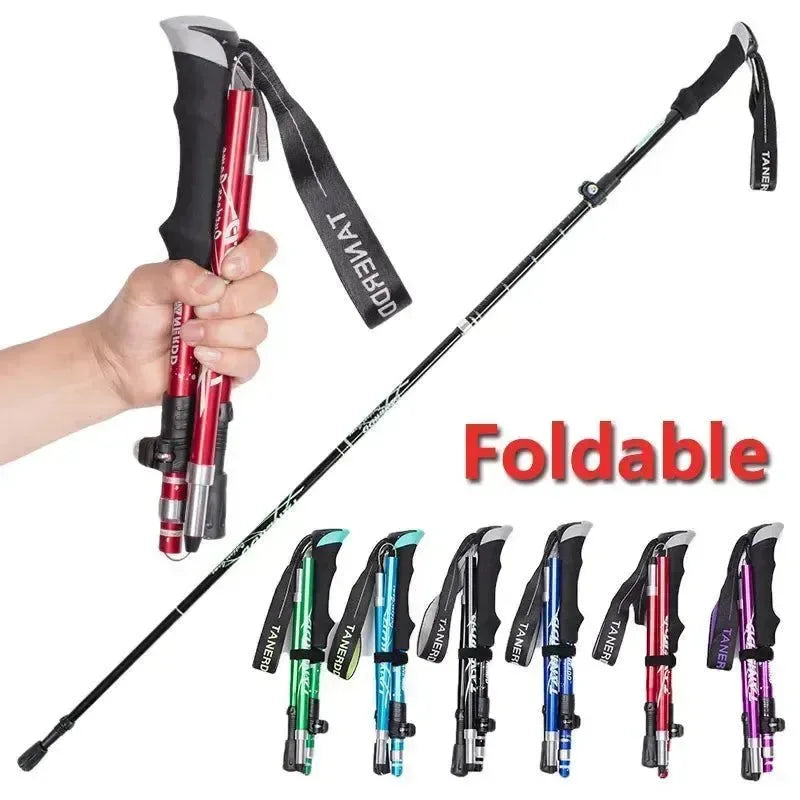 Bastón de trekking plegable de 5 secciones, ultraligero, ajustable, telescópico, resistente a golpes, para exteriores, senderismo, escalada y caminatas.