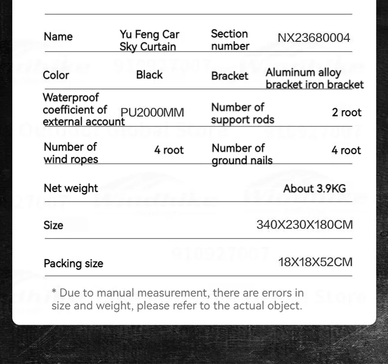 Tienda de campaña lateral para coche MOBI GARDEN - Toldo de camping con acoplamiento para SUV (8㎡) Toldo avanzado para exteriores