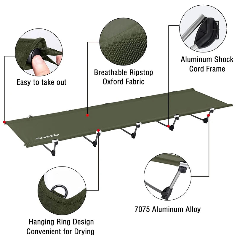 Catre plegable ultraligero Naturehike: soporta 150 kg, compacto y portátil