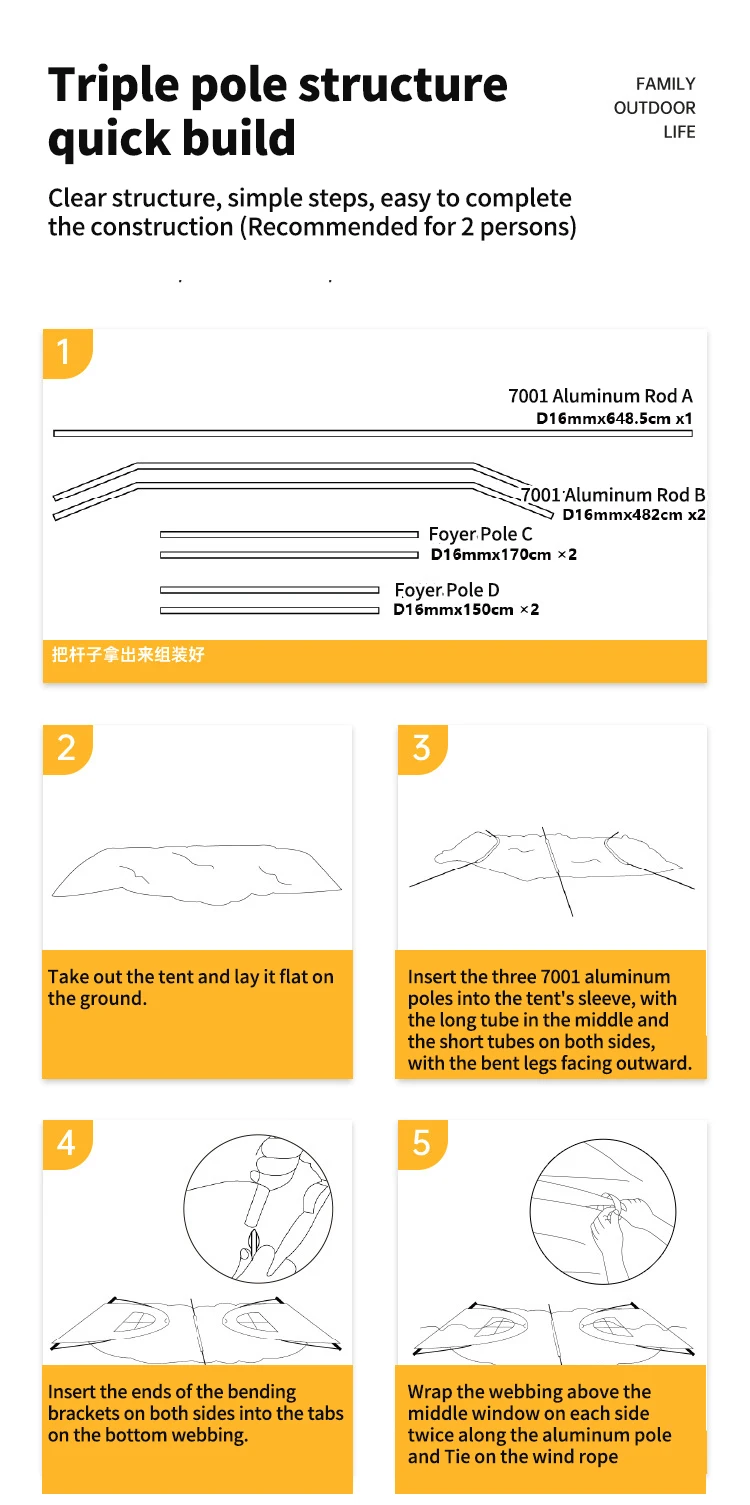 • Uso en cuatro estaciones: diseñado para soportar diversas condiciones climáticas, lo que lo hace adecuado para acampar durante todo el año.