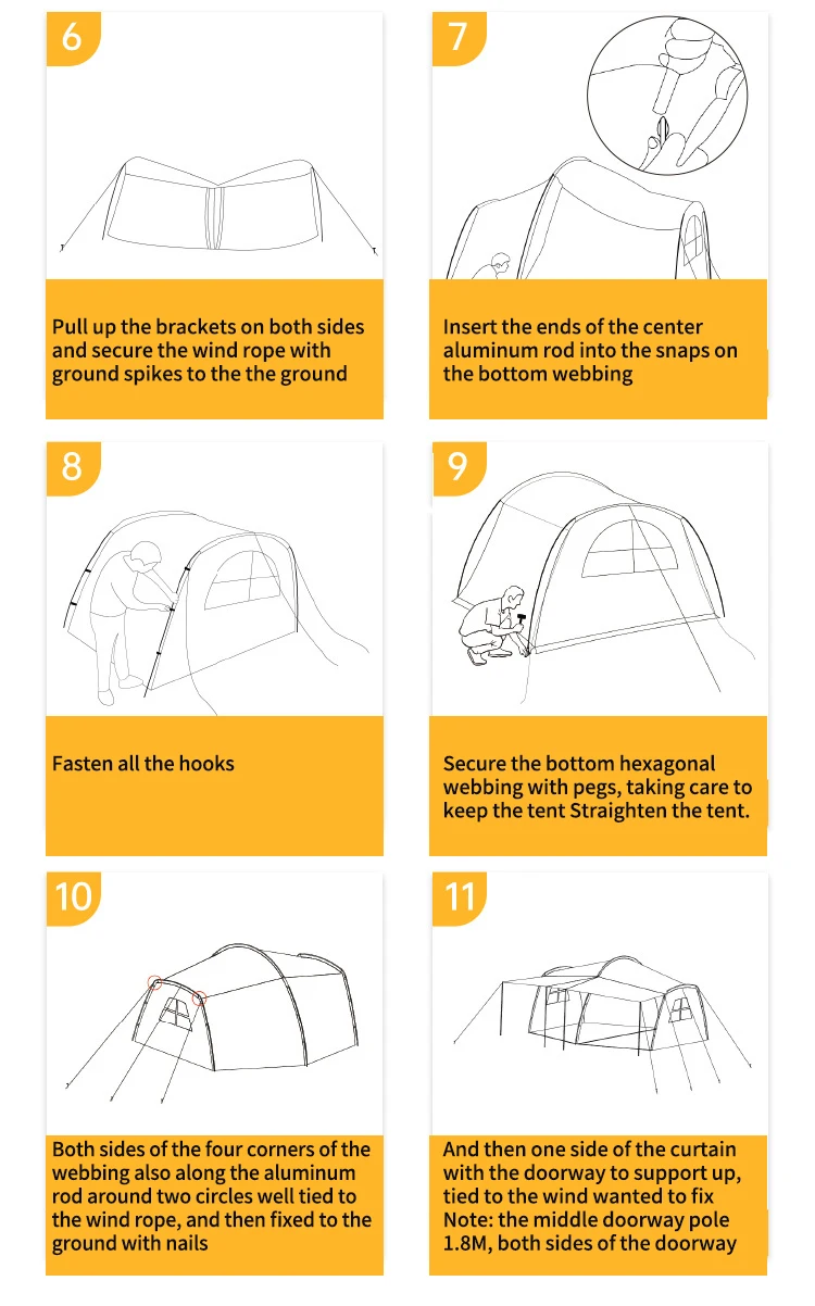 • Revise y mantenga periódicamente la carpa para garantizar su longevidad y rendimiento, especialmente después de la exposición a condiciones climáticas adversas.