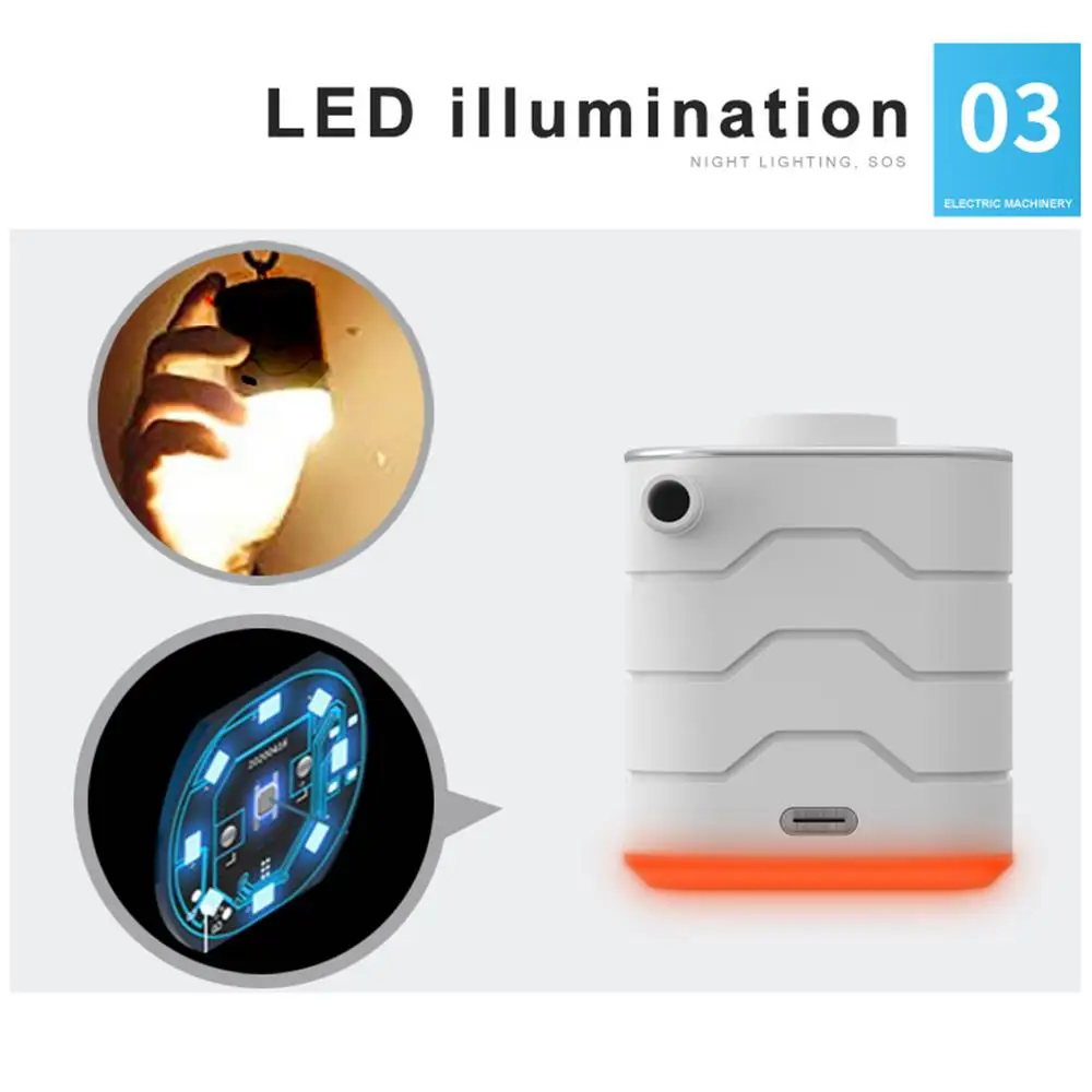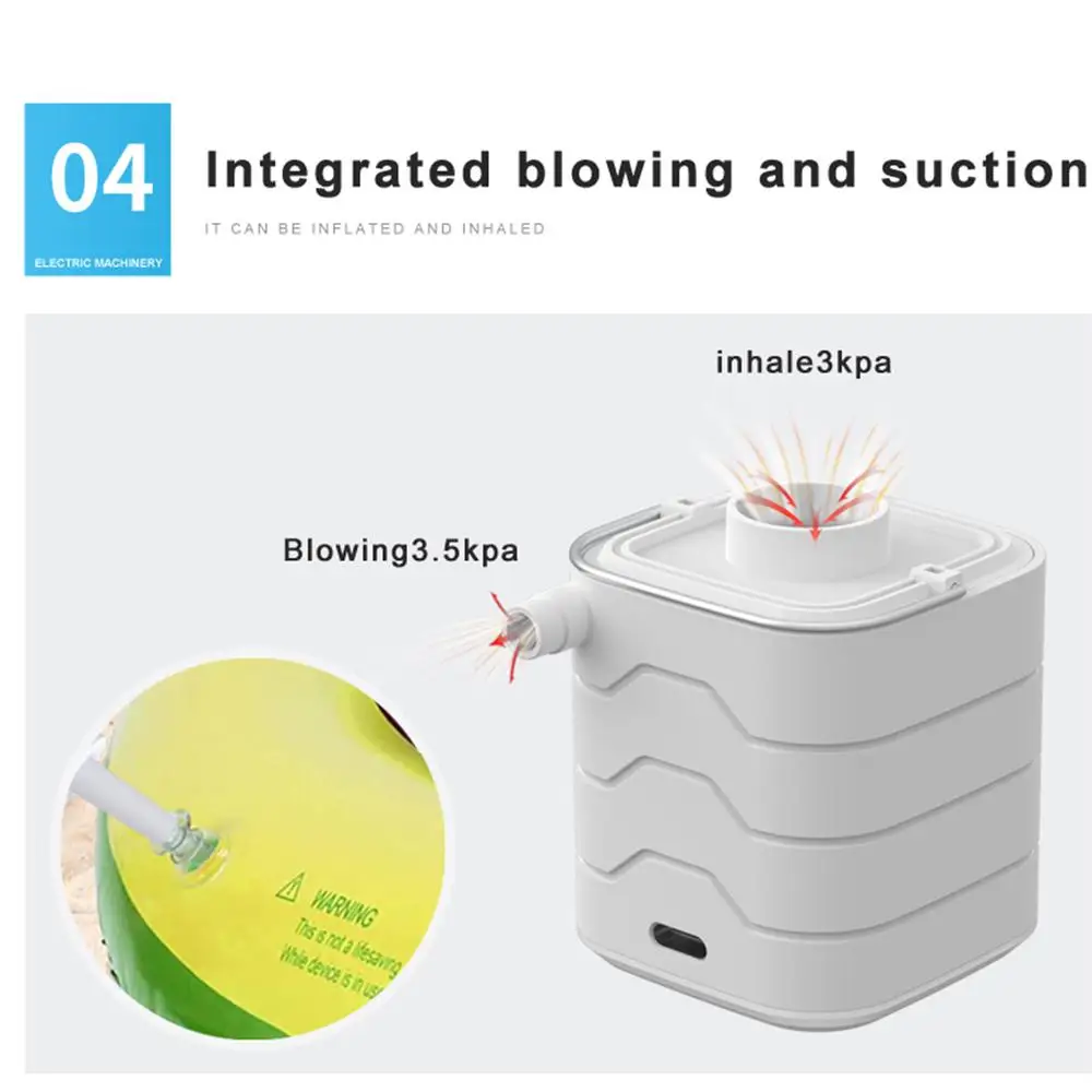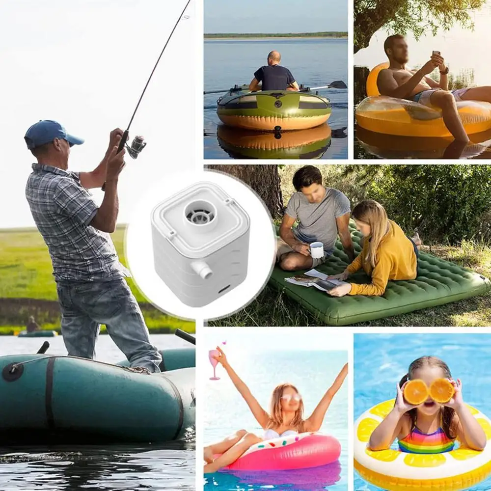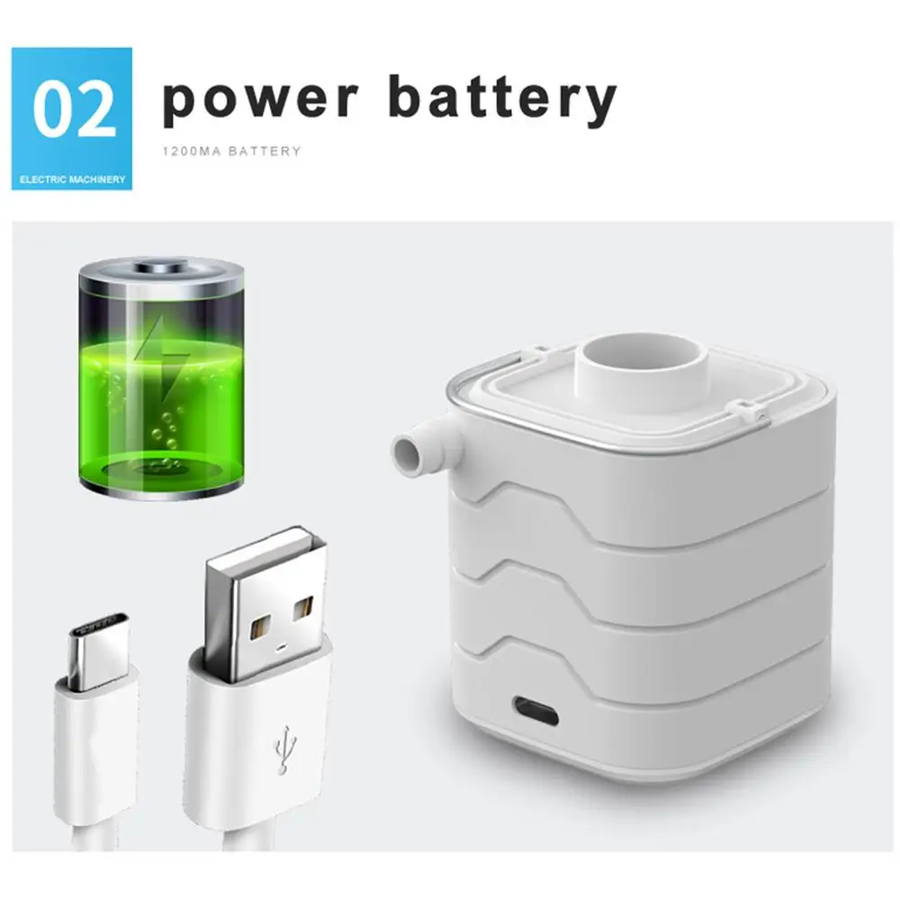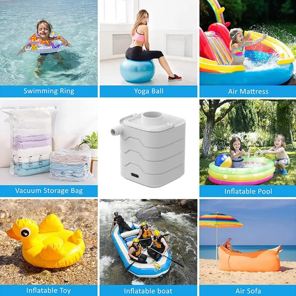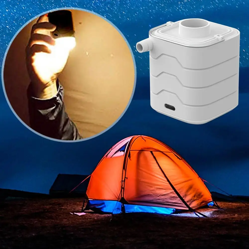 - Esta bomba de colchón de aire es una herramienta versátil y práctica para todas sus necesidades de inflado. Simplemente presione dos veces para empezar a usarla y use el asa y la luz para colocarla fácilmente en su mochila de camping. Con una batería de larga duración de 1200 mAh, puede usarla para múltiples propósitos. Incluso cuenta con un modo SOS con luz roja intermitente para situaciones de emergencia. Incluye 6 boquillas para mayor versatilidad.