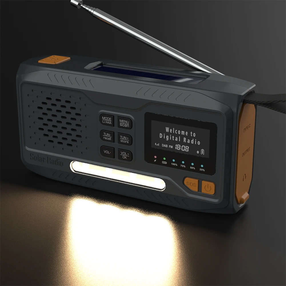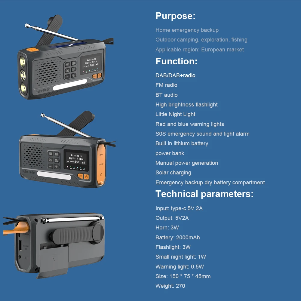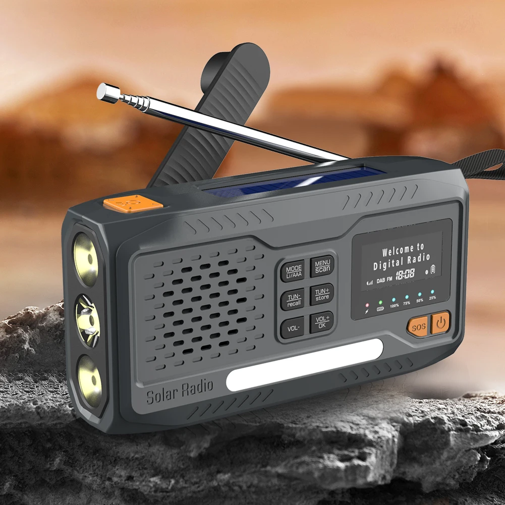 Radio de emergencia solar con manivela - 2000 mAh, recargable, compatible con DAB/FM/Bluetooth, con alimentación de 4 vías y lámpara de lectura para supervivencia Radio de emergencia solar con manivela - 2000 mAh, recargable, compatible con DAB/FM/Bluetooth, con alimentación de 4 vías y lámpara de lectura para supervivencia