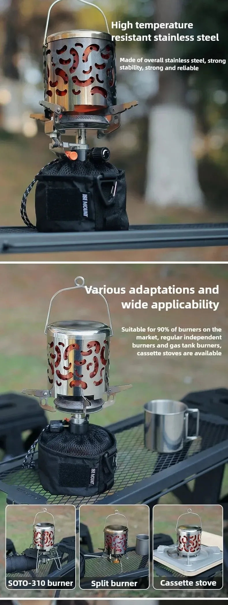 ✔ Estabilidad de llama mejorada : mejora la eficiencia de cocción en condiciones de viento.