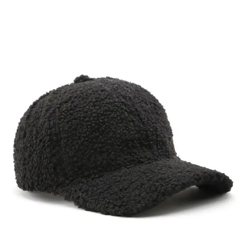 Gorra de béisbol de otoño-invierno para mujer: gorro de felpa abrigado con correa ajustable