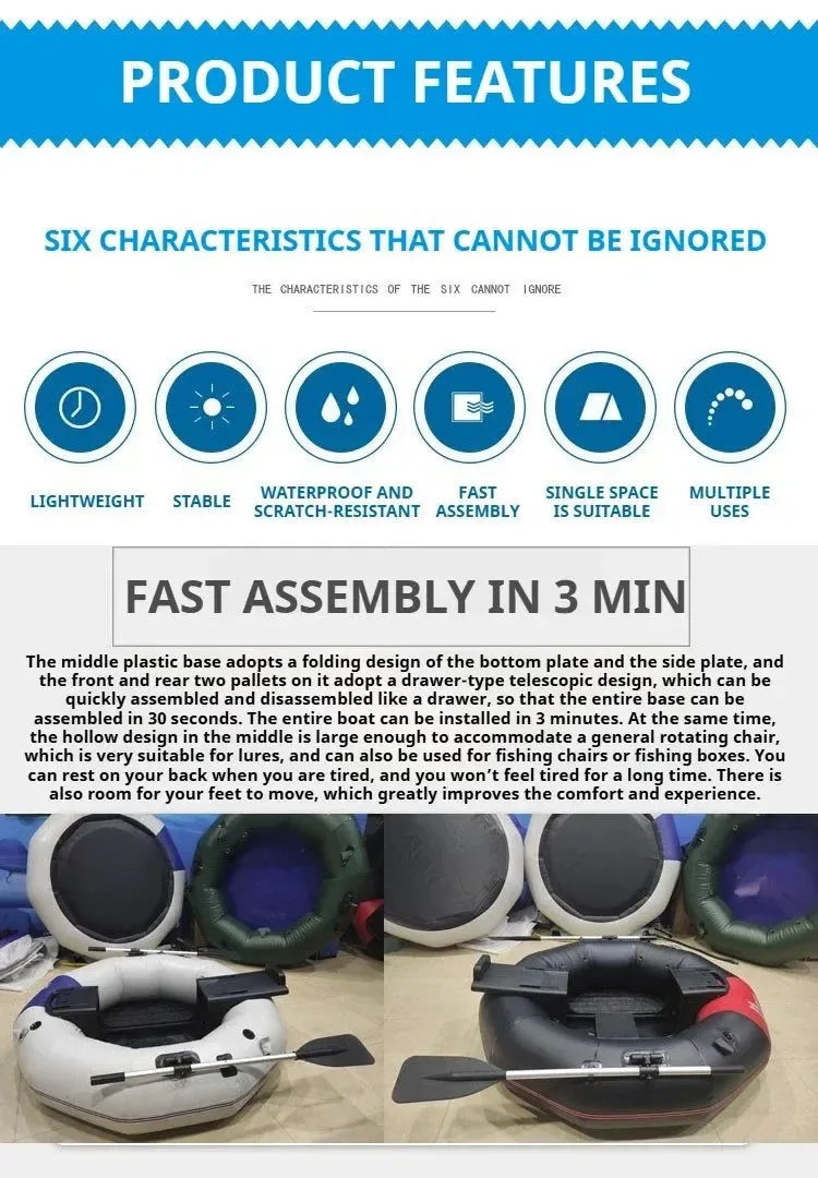 2-Minute Foldable Inflatable Fishing Boat with Electric Motor Port, 250kg Capacity Solo Pontoon Raft