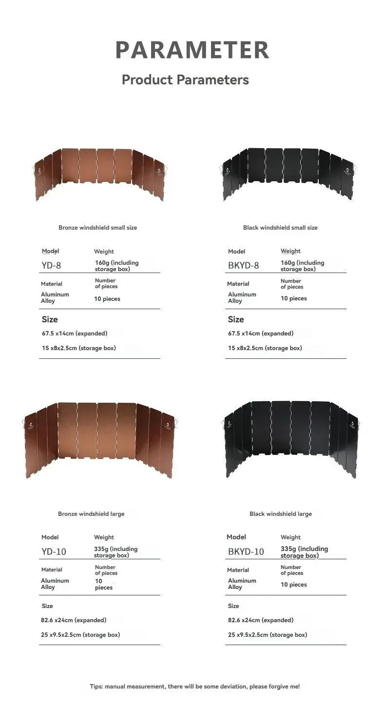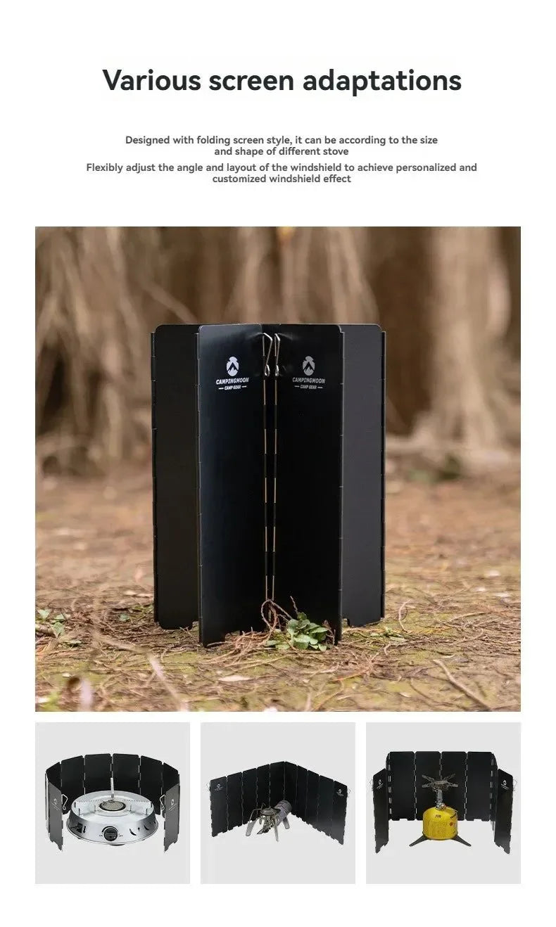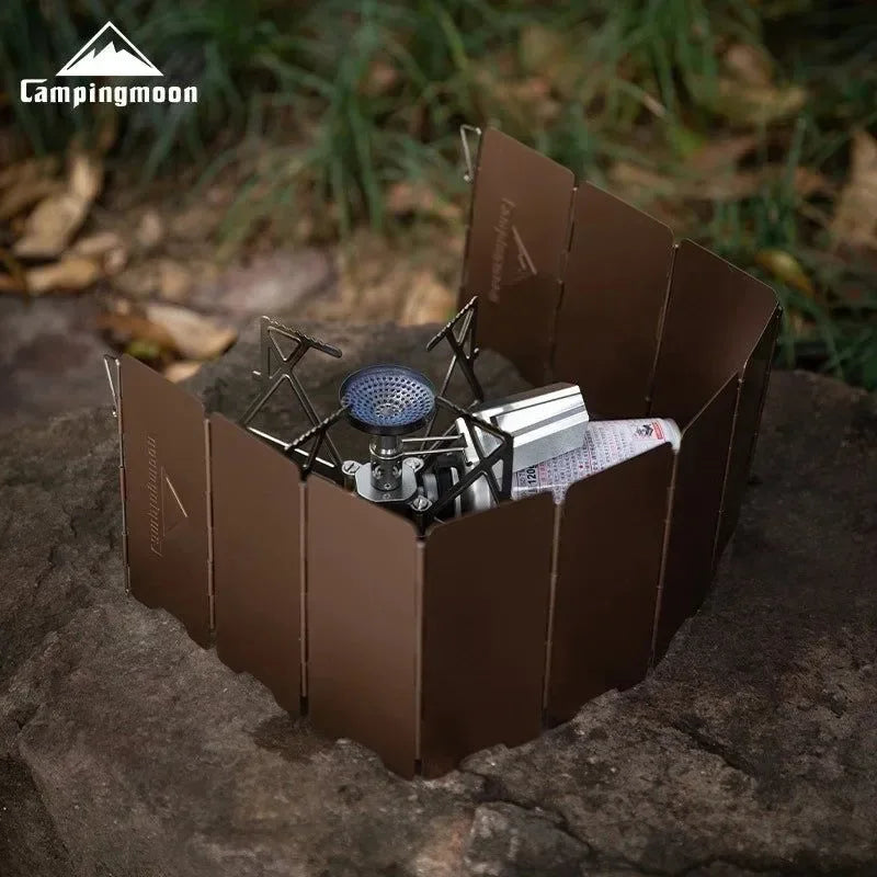 CAMPINGMOON YD8/YD10 Wind Shield – Foldable Aluminum Alloy Gas Stove Wind Guard for Camping, Hiking & Outdoor Cooking