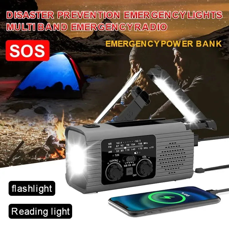 Emergency Radio Stereo - Multifunctional Hand Cranked Charging, Portable Outdoor Adventure Power Bank, Solar Radio