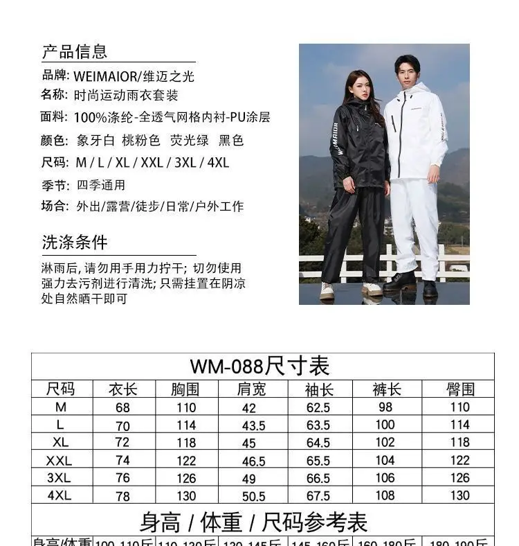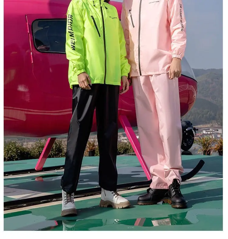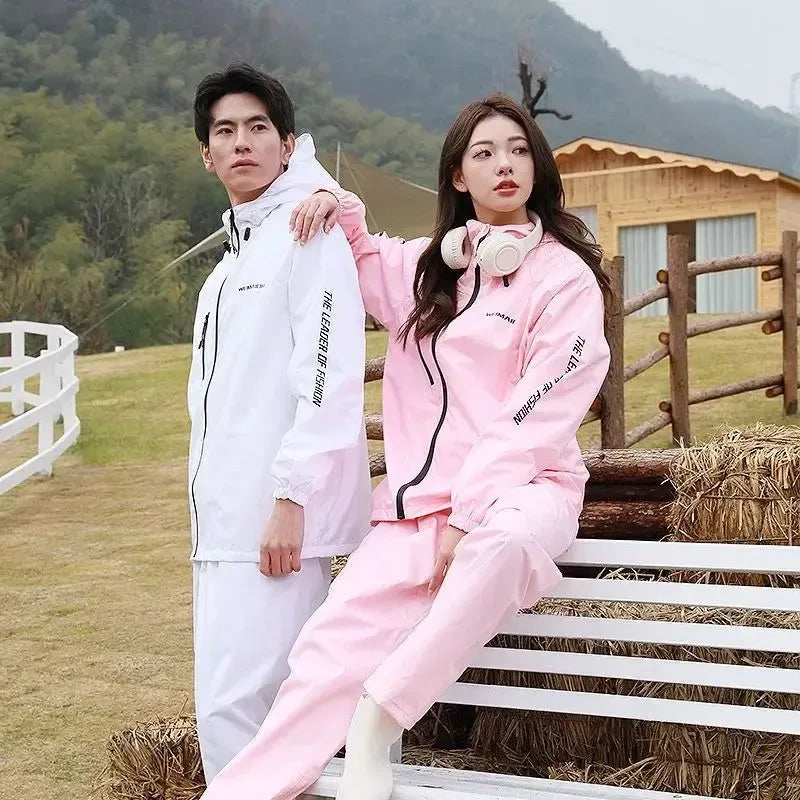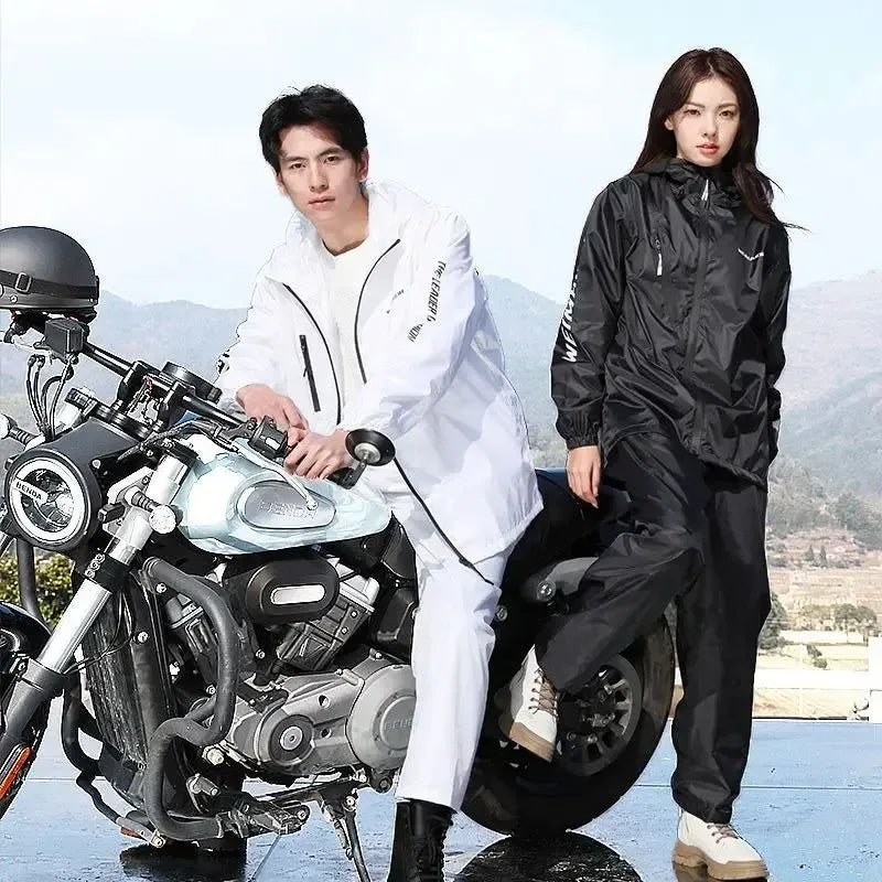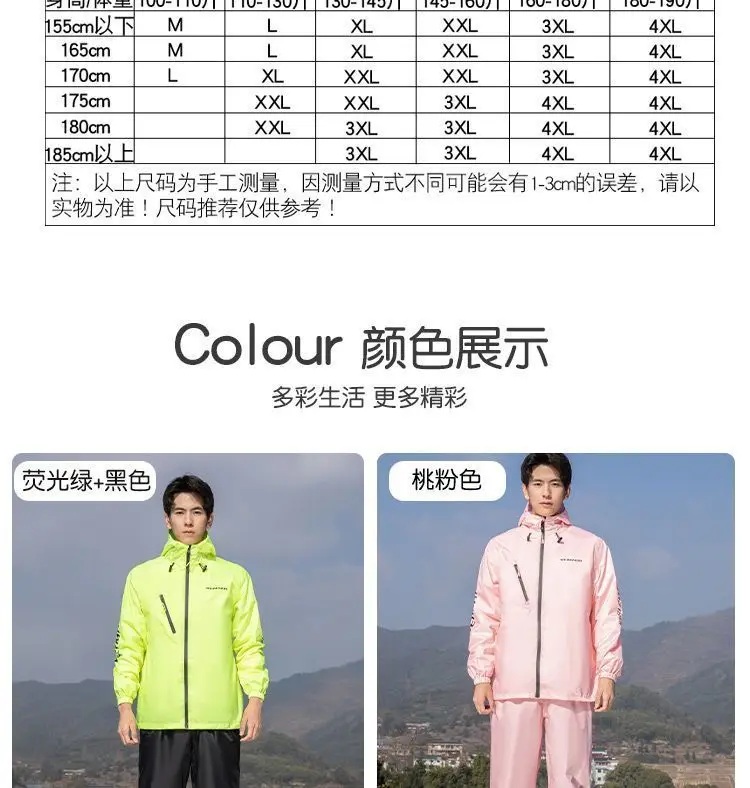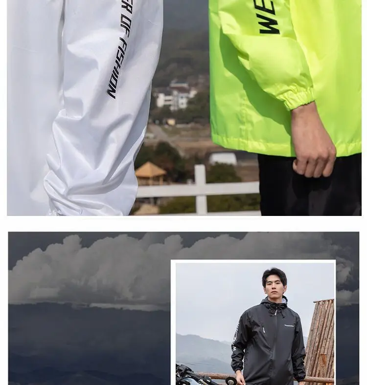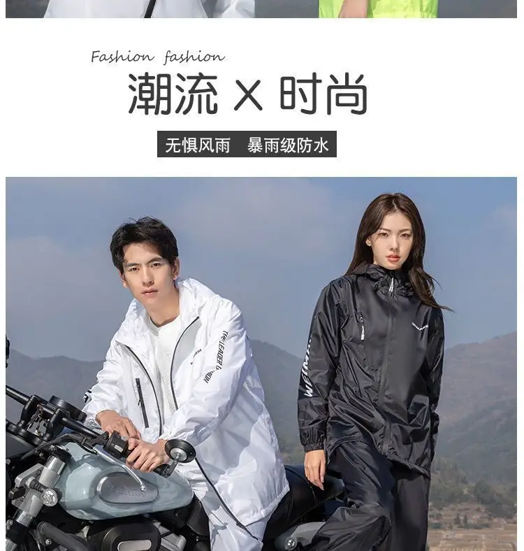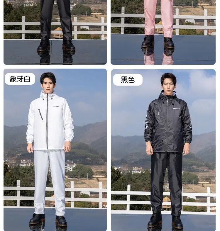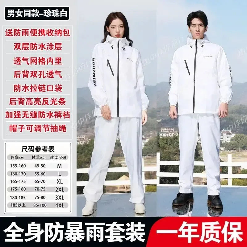 Lightweight Hooded Polyester Raincoat and Pant Suit - Waterproof Rainwear for Travel, Hiking, and Motorcycle Cycling