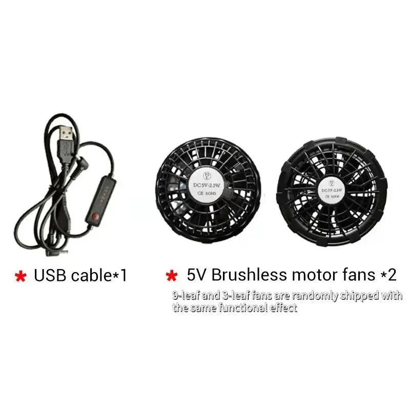 The cooling fan vest has two fan units at the waist of the garment. Connect the power bank with USB and the clothes will start working. (Power bank not included) It has three airflow modes, so you can adjust the airflow according to the working conditions and reduce the temperature by more than 8°C.