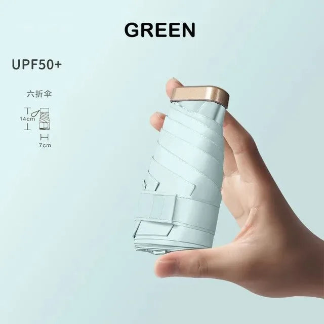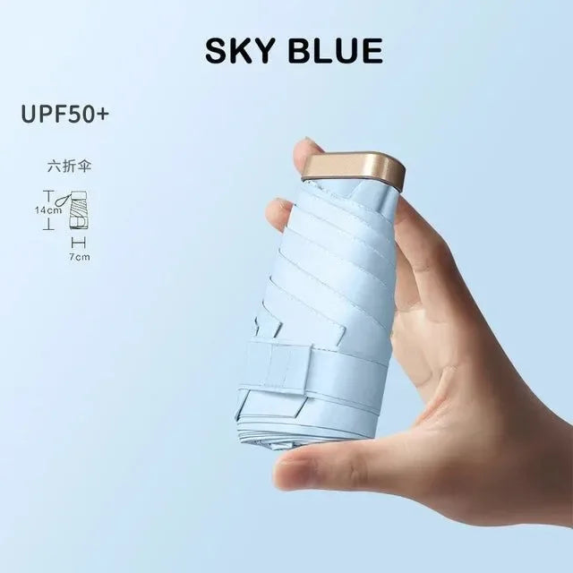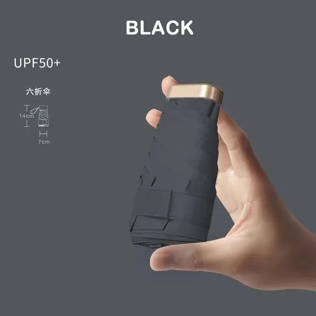 Mini Pocket Umbrella - Ultralight 6-Rib Folding Parasol, UV Protection, Portable for Rain and Sun loading