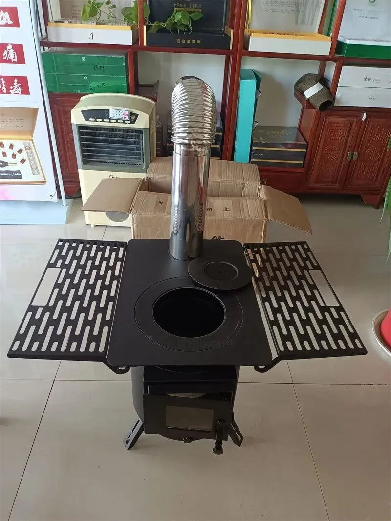 Mobile Wood Burning Heater Stove for Indoor & Outdoor Use - Portable Heating with Cooking Top loading