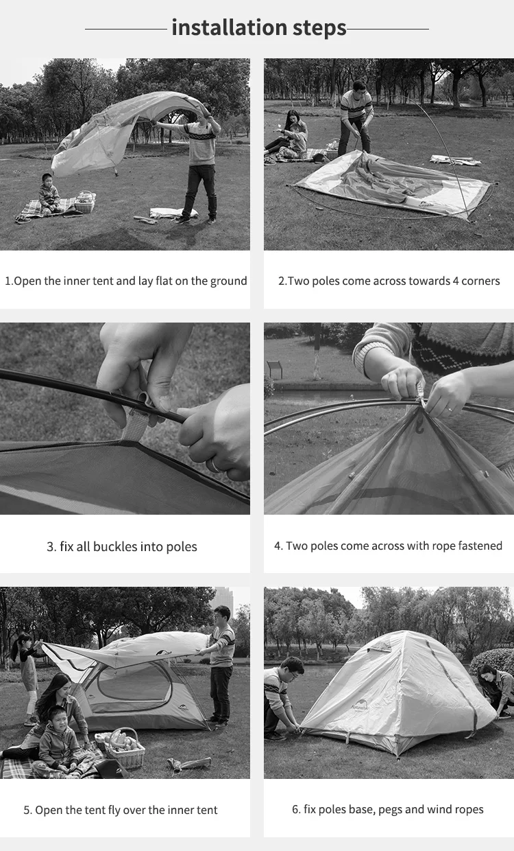 • Follow the setup instructions carefully to avoid damage to the tent or poles.