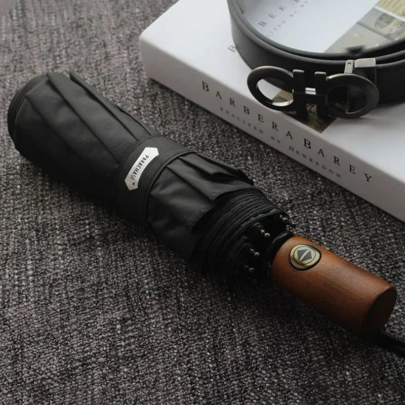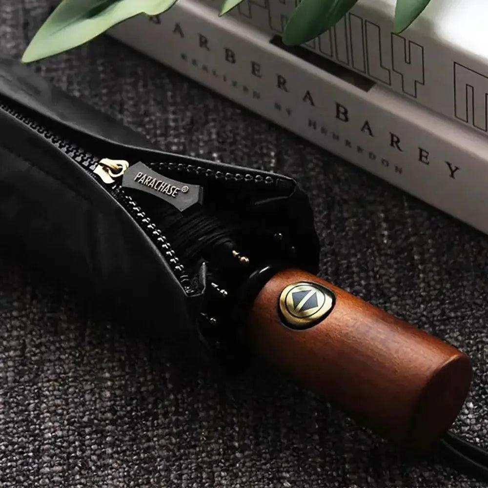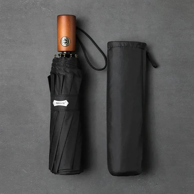 Parachase Automatic Umbrella - 10-Rib Golf Sun Umbrella, Wood Handle, Windproof & UV Protection - Trekker Essentials Parachase Automatic Umbrella - 10-Rib Golf Sun Umbrella, Wood Handle, Windproof & UV Protection - Trekker Essentials