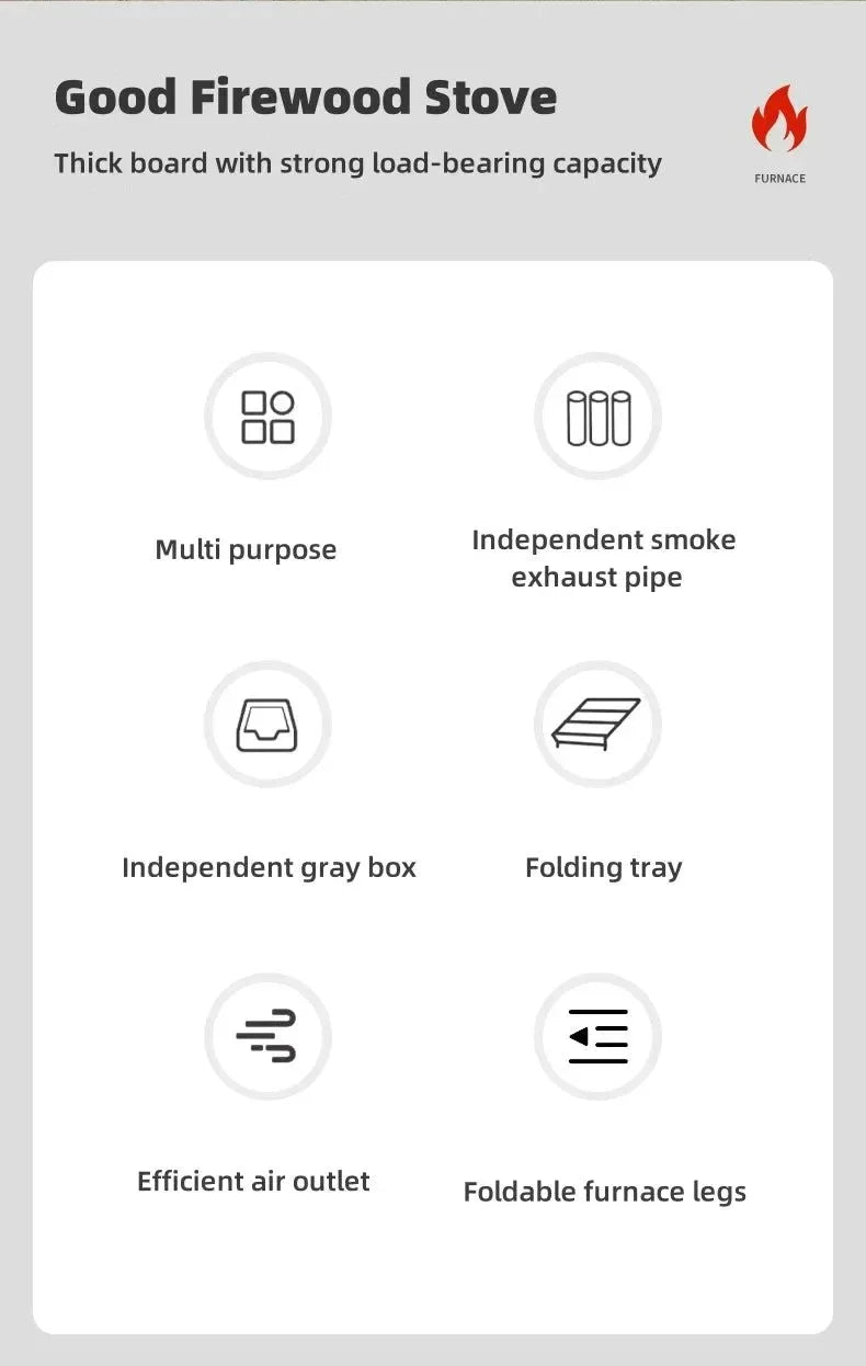 Portable Stainless Steel Tent Stove: Wood Burning Stove with Chimney Pipe for Camp Heating & Cooking